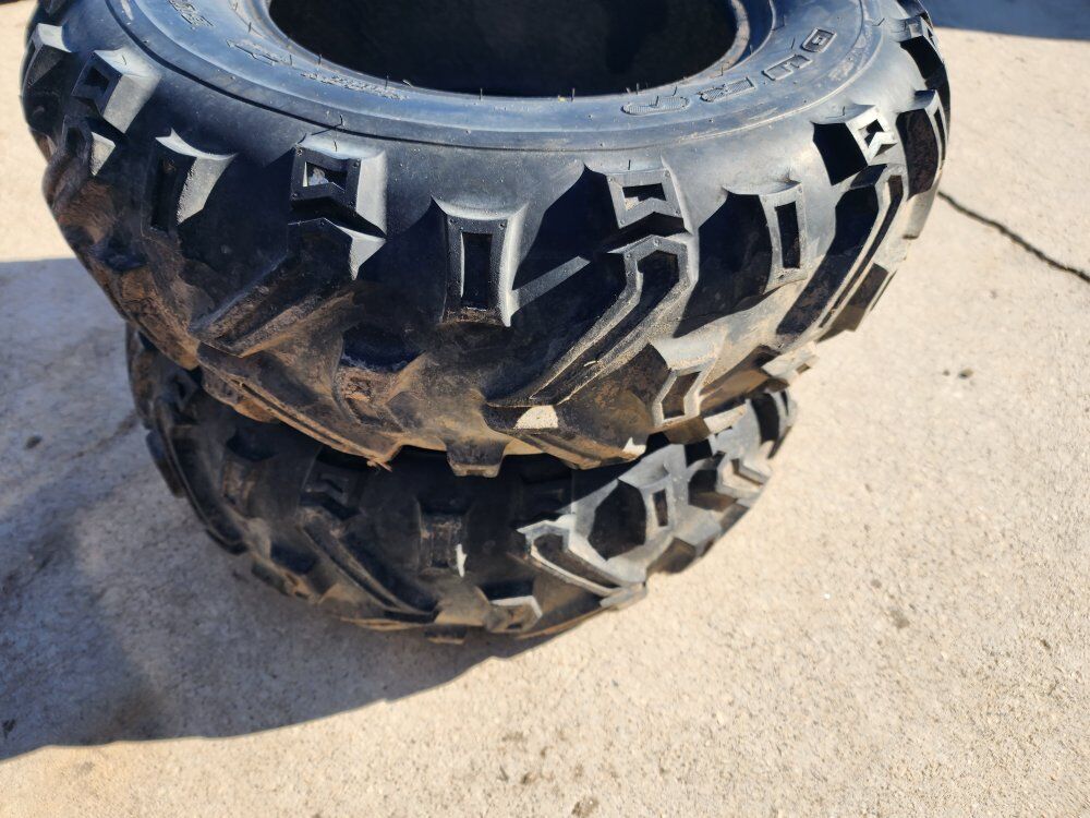 Both tires have great tread amd held air just fine but they do have a little cracking in the side walls. I can also.mount and dismount if needed. call or text