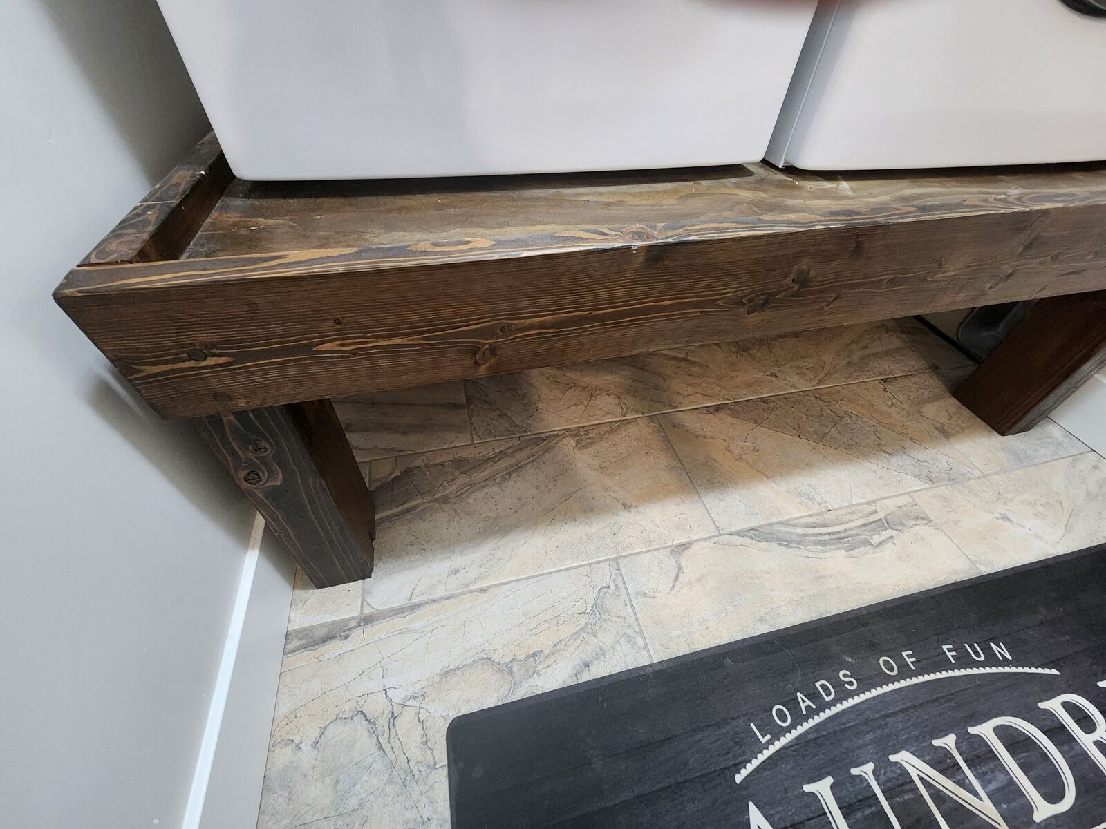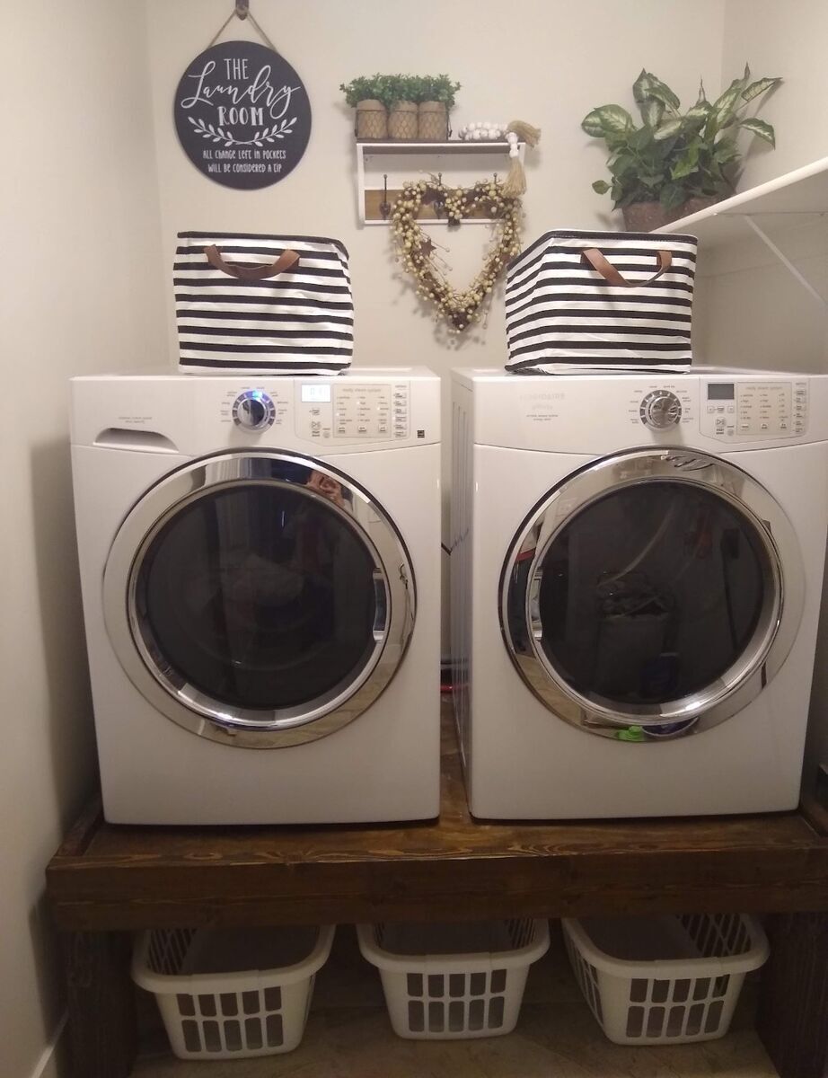 Heavy and sturdy pedestal for your washer and dryer. We put our laundry baskets underneath and loved the space it saved. We upgraded our washer and dryer to Speed Queen, the pedestal makes them to tall for top load washers. It is heavy, dimensions in photos. Text is best, thanks.
