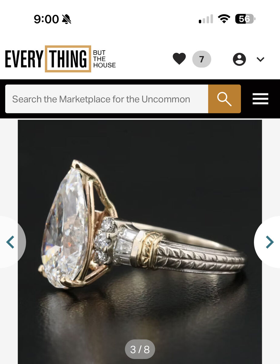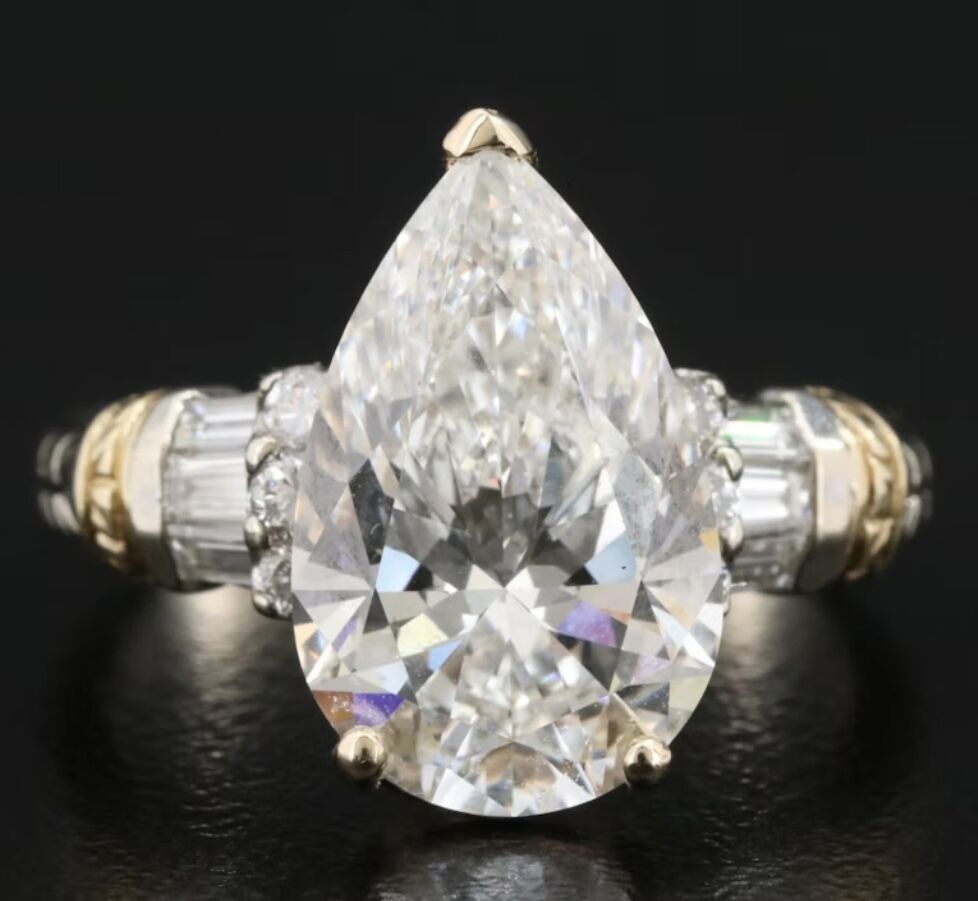PayPalWhite gold with yellow gold accent. This is a high end real lab diamond valued at $6000, but looks like $50k. Comes with paper work.