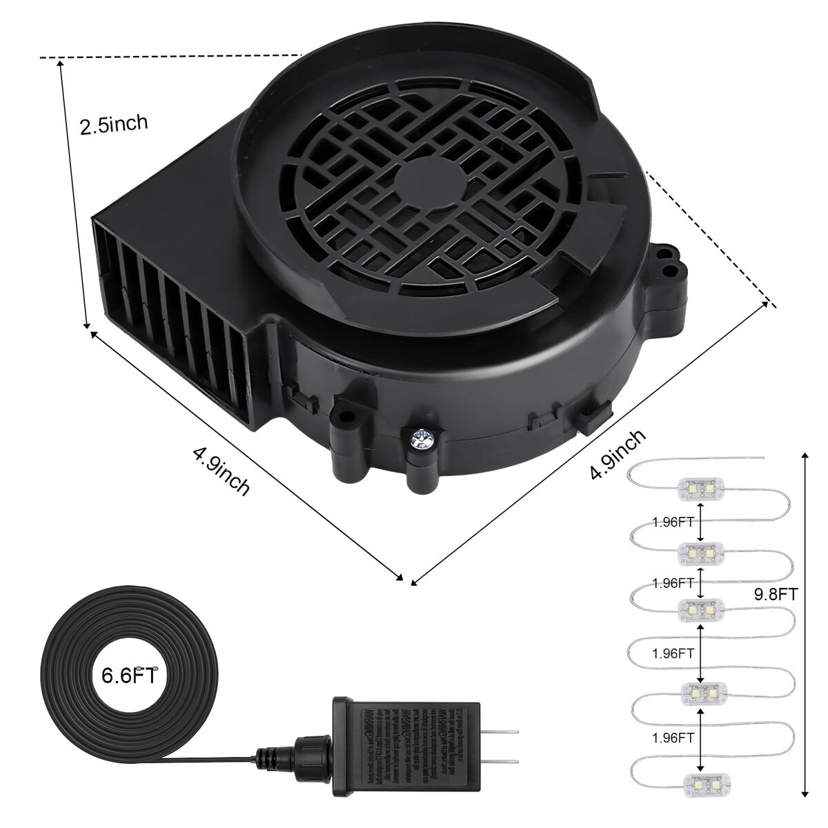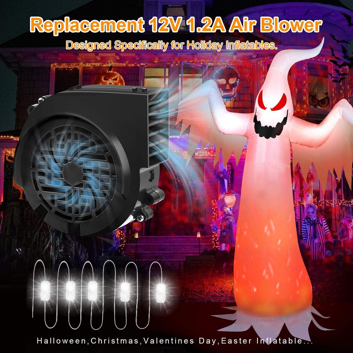 Revive your smaller holiday decor! Our inflatable fan replacement kit is designed for 5 to 9 FT inflatables. This 12V 1.2A air blower for inflatables provides the perfect amount of power, making it an ideal inflatable motor replacement. It’s the essential replacement fan for yard inflatables to bring your smaller Halloween and Christmas decorations back to life. Bright & Clear 5 White LED Lights Give your inflatables a crisp, clean look! This kit includes an inflatable led light replacement with 5 bright white LEDs that cast a clear, steady glow. These replacement lights for inflatables make details pop, providing a classic and brilliant appearance. It’s the perfect inflatable light replacement for a sharp, professional-looking holiday display. Certified Safe for Worry-Free Use Your safety is our priority. This inflatable blower unit is CE & FCC certified and includes a UL-listed replacement yard inflatable adapter. It features quadruple protection against over-voltage, over-heating, over-current, and short-circuits, ensuring your festive displays remain powered safely all season long. Quick & Hassle-Free Installation Get your decorations up in minutes! Our replacement fans for inflatables are designed for a straightforward, tool-free setup. Simply follow the clear instructions to connect this replacement fan for inflatable holiday decorations. It’s the easiest way to swap out an old blow up fan for inflatables and refresh your outdoor decor. Compact, Efficient & Durable Design Built to last, this 12V 1.2A inflatable blower fan is powerful yet energy-efficient. The sturdy inflatable replacement blower motor keeps your smaller inflatables perfectly inflated without being overpowering. This reliable replacement motor for inflatable decorations is the smart, efficient choice to keep your holiday displays looking great.