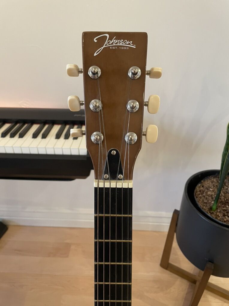 VenmoJohnson JG-100-WL 3/4 size acoustic guitar – good for beginners or younger players. Good condition with minor cosmetic scratches.