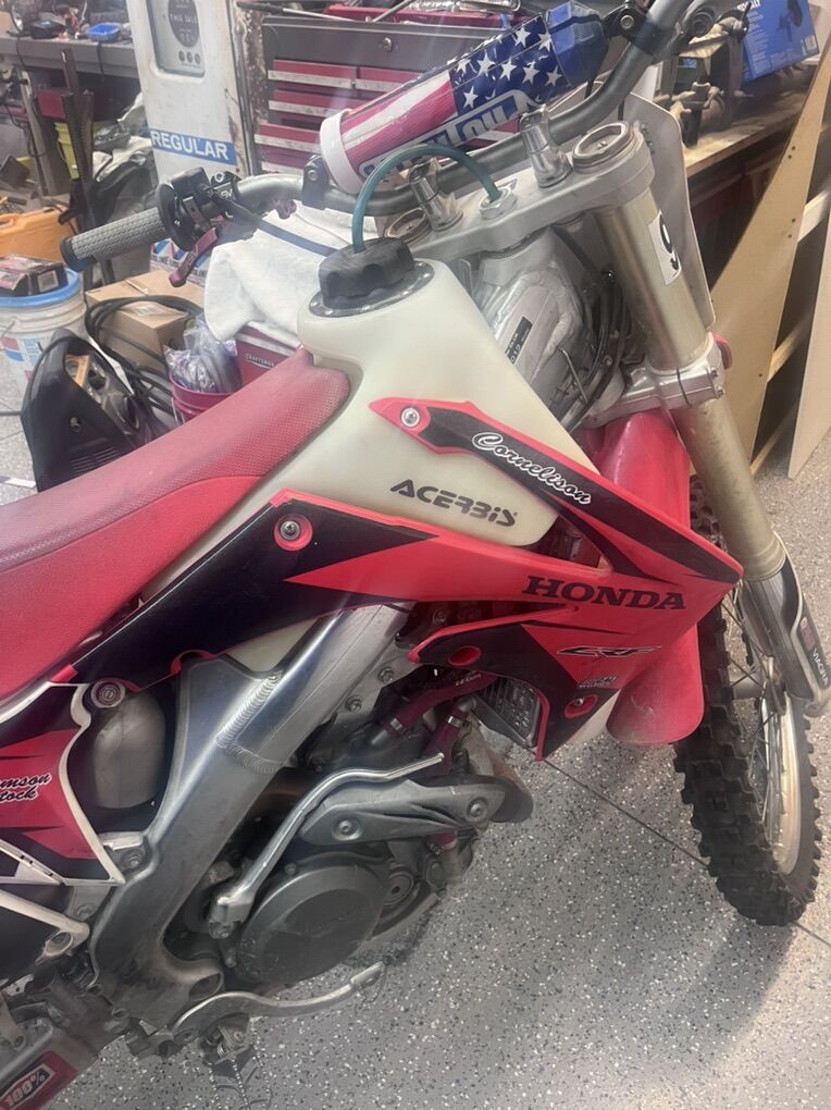 Just not around good bike it’s been very well. Taken care of new top end at the end of last season has a kickstand which is very nice. It’s got a huge desert tank on it. The only thing he needs is a rear tire. Doesn’t have to have it right now, but it will need one this season.