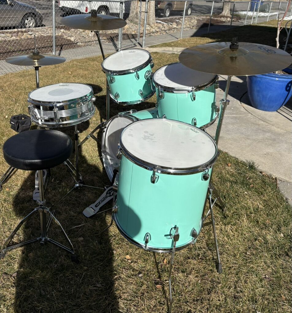 Batería Argent de 5 Piezas – Restaurada – Como Nueva – Color Turquesa