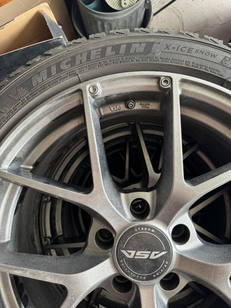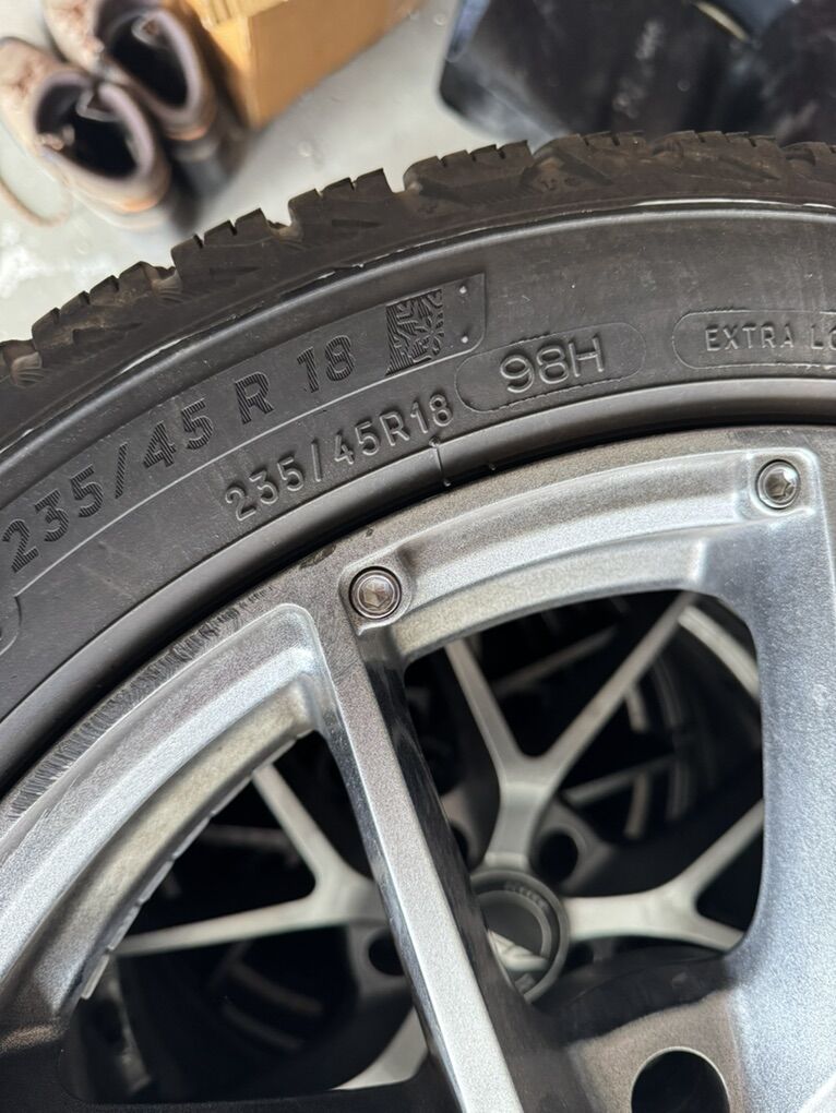 Tires are Michelin X-Ice Snow 235/45R18 98H XL. They have plenty of life left, I believe they have seen two winters total, and last year with only a couple months use.