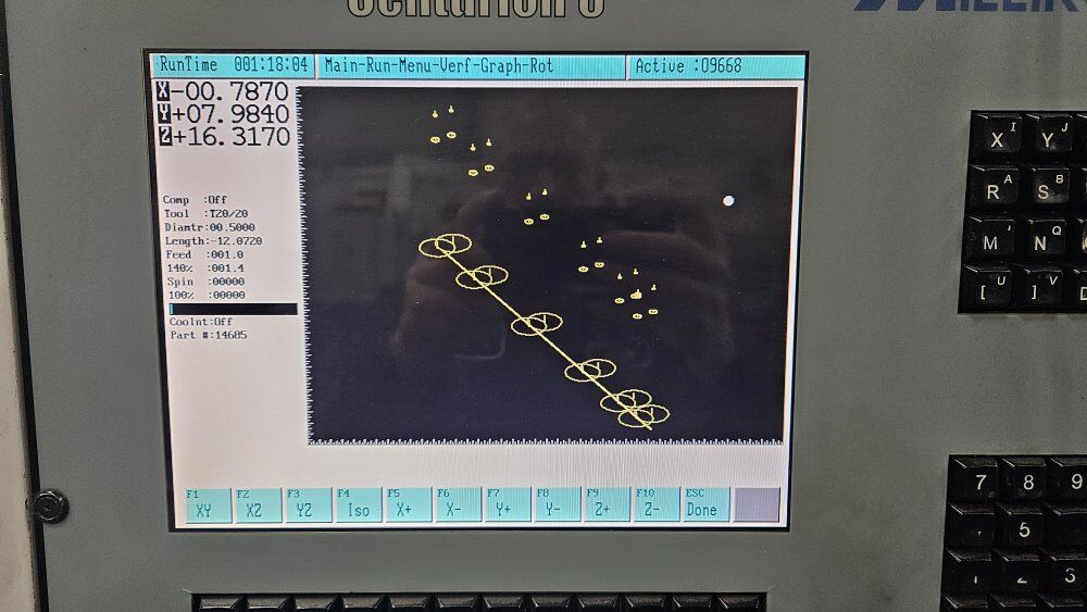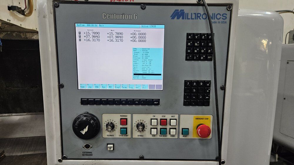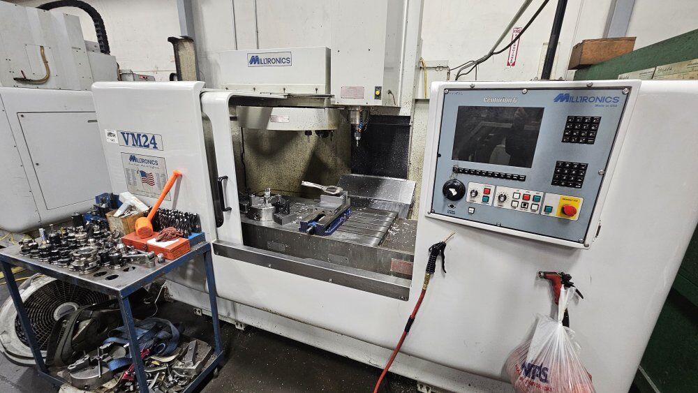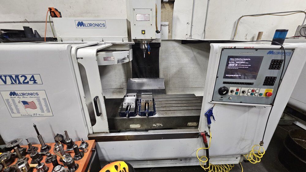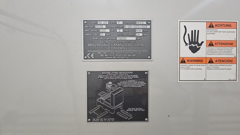 Two VM24 cnc mills for sale. $20,000 each 20 place tool changer. 24x40 table travel. 8000 rpm. chip remover. 240v 3 phase. cat40. Easy to learn and program conversational from the screen. Tapping & Drilling cycles, Thread milling, Engraving, Frame, Pocket, Multi-sided shapes, Line, Arch all included in the conversational.