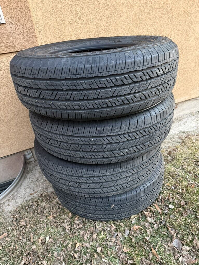 Have a pretty much brand new set of 4 Bridgestone Dueller H/T tires that came of a new Toyota Tundra. Only had about 250 miles on them before a switched to some bigger A/T tires. Tire size is 265/70 R18. 400 OBO