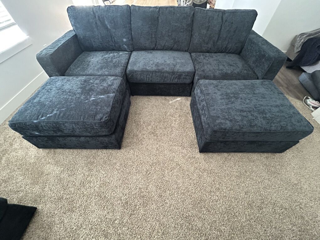 LoveSac Double Chaise 5 Seats in Corded Velvet Midnight Navy