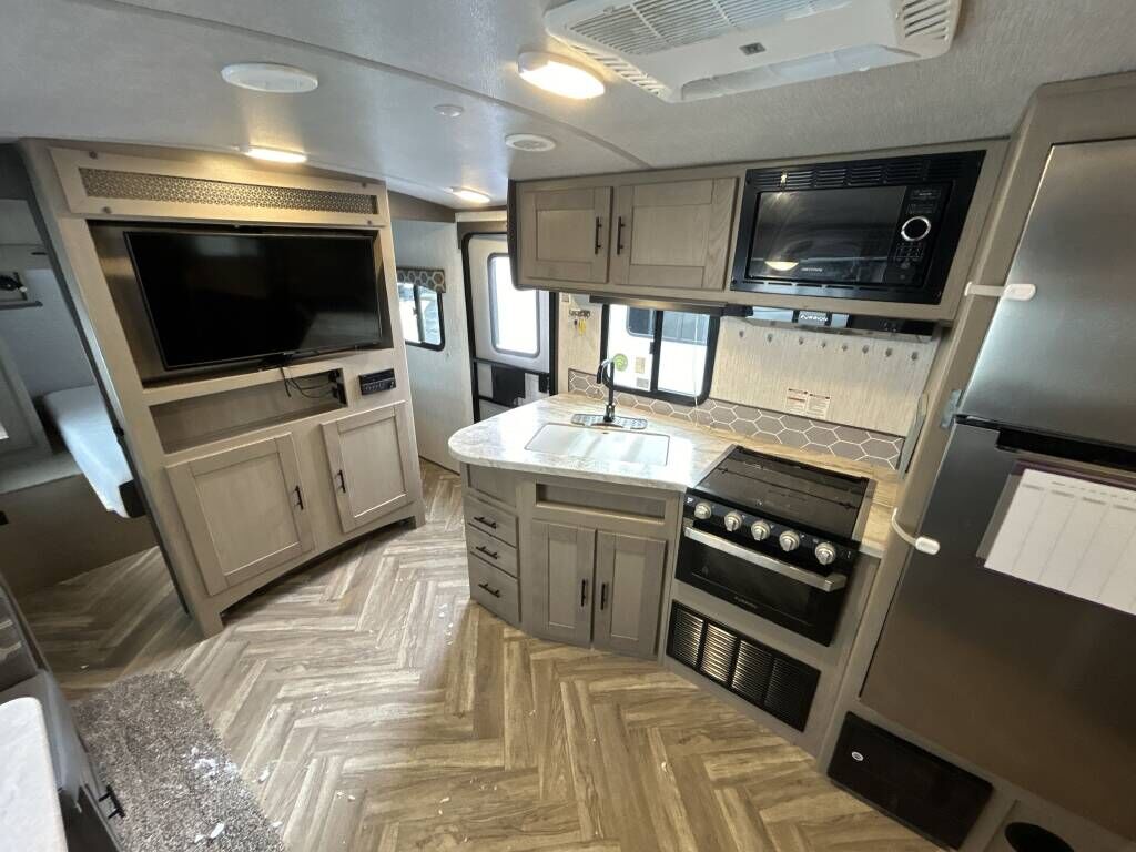 It's a very clean beautiful camper with only 5k miles, now to big for just my wife and I as the kids have grown. Those are stock pics so my floor is clean LOL and sorry no TV.