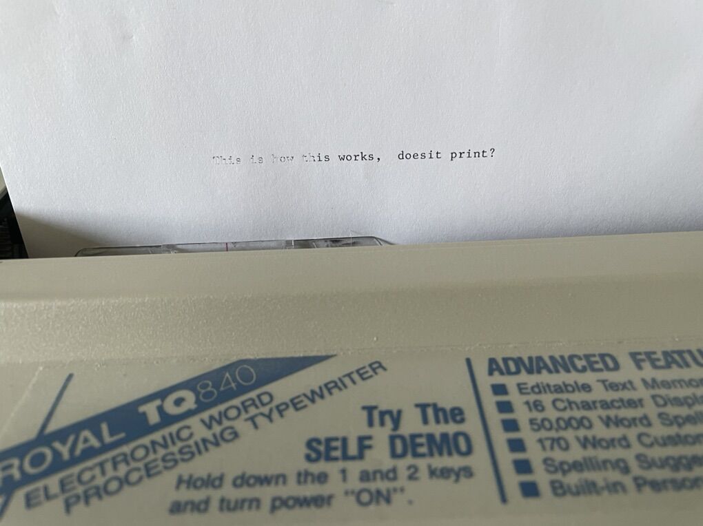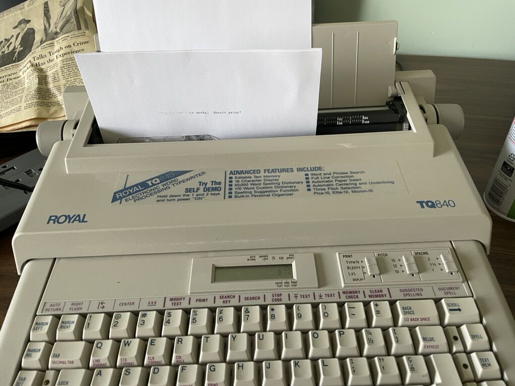 VenmoRoyal TQ840 electronic word processing typewriter. From the 70’s I believe. It still works. Probably needs new ink cartridges but you can see it printed for me 100.00. Pick up in Murray