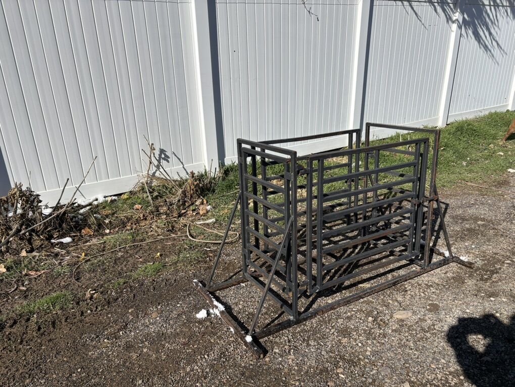 VenmoVery heavy duty custom built small bucking chute. I used for a goat roping chute and it worked great