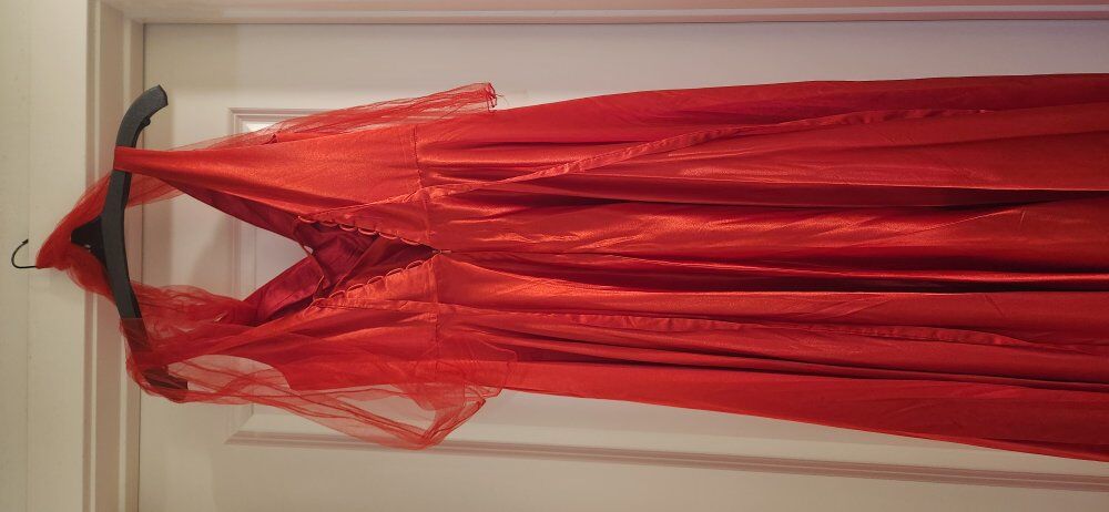 VenmoSatin Red XL Formal Gown with lower zipper back and lace up upper back-sheer red wrap included