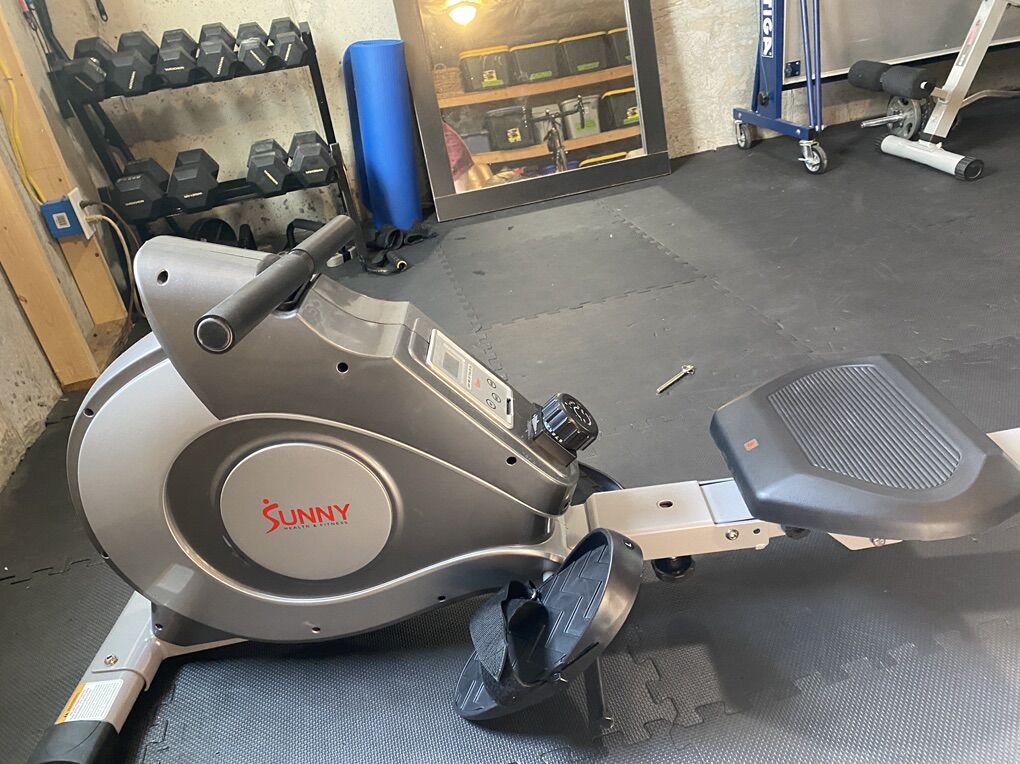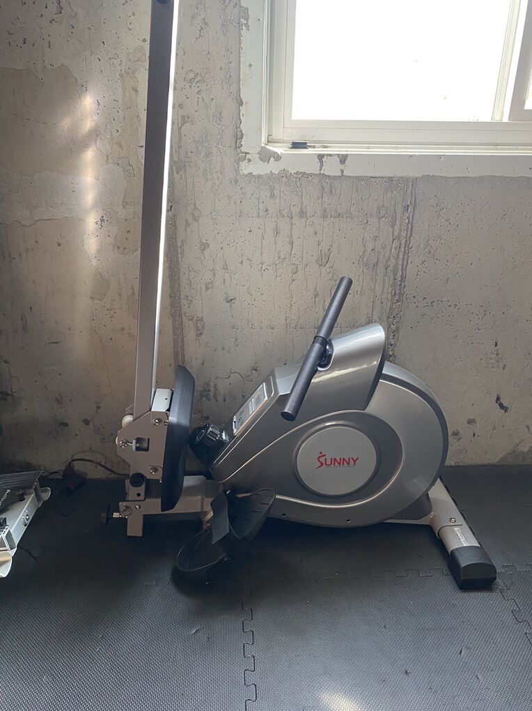 Awesome row machine folds up nicely to be put away! Hasn't been used much