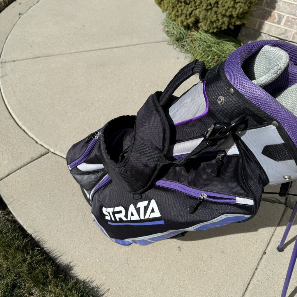 Clean Strata golf bag. The stand doesn’t work very well, but other than that, the bag is in great shape.