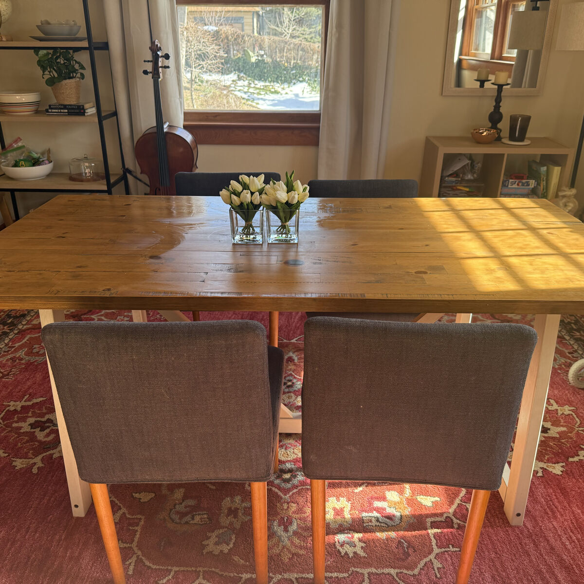 VenmoMoving and selling table with bench. Good condition. One dark spot which is pictured. First come, first serve.