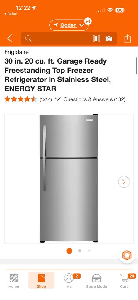 The Frigidaire 20 cubic foot top freezer refrigerator fits in the same sized cutout as a traditional 18 cu. ft. model. This refrigerator features the EvenTemp Cooling System, precise temperature control which keeps food at one ideal temperature. Spacious interior storage options include generous door bins and a full-width glass freezer shelves