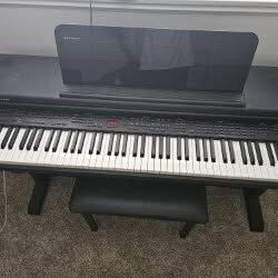 VenmoBlack finish. Allows you to compose, arrange and record your own music. Very little use. Specifications 86 Selectable Sounds include 6 pianos (acoustic, rock, and ragtime), 4 electric pianos, 2 harpsichords, 2 pipe organs, jazz and rock organs, 2 acoustic guitars, jazz and rock guitars, 4 string sections, and 2 choirs, solo violin and cello, flutes, clarinets, bassoon and oboe, trumpets, trombones, french horns, brass sections, alto tenor and baritone saxes, vibraphones, marimbas and other mallet instruments, accordion, harmonica, and bells, plus a wide variety of synth brass, ensembles, keyboards, pads, leads, and synth effects. And many more features. Dimensions: (H x W x D) 33" x 57" x 22.75" Weight:214 lbs.