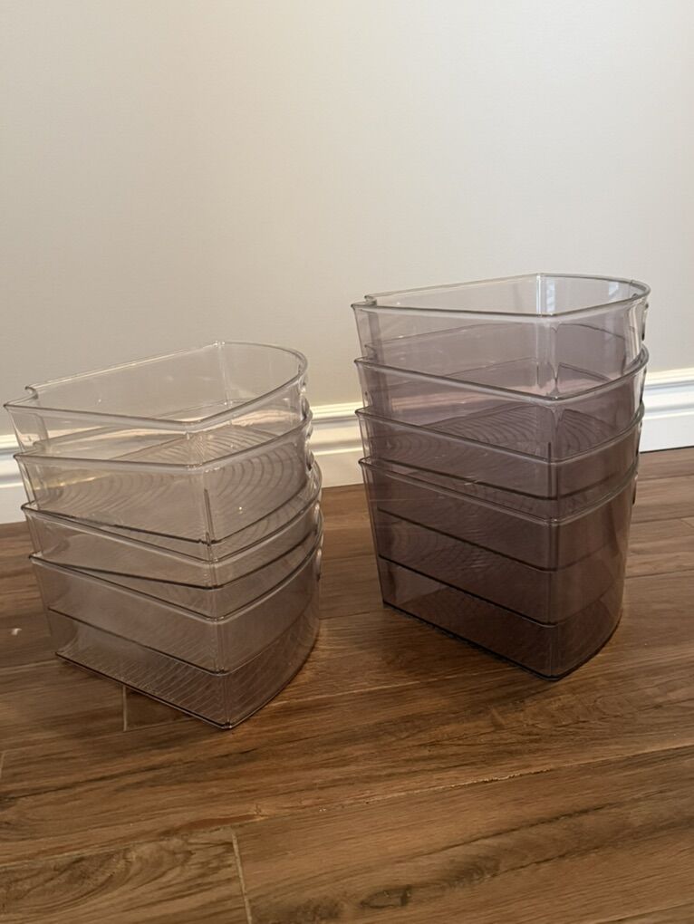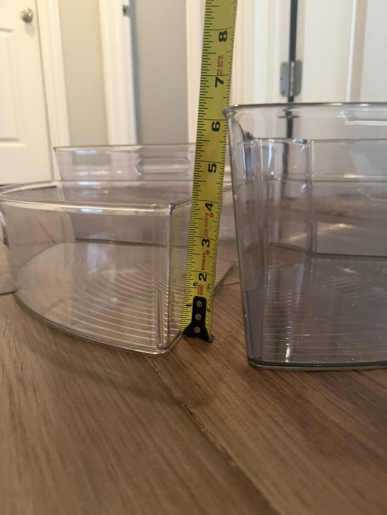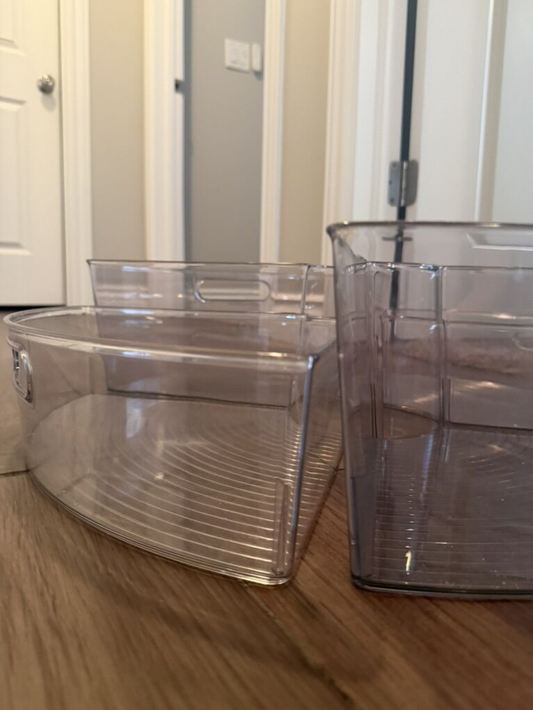 Set of 4 pantry turntable storage bins. Clear/Smoke, 6” tall. $30