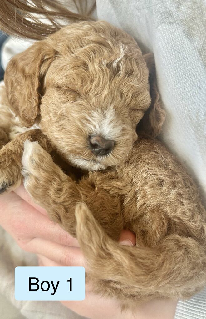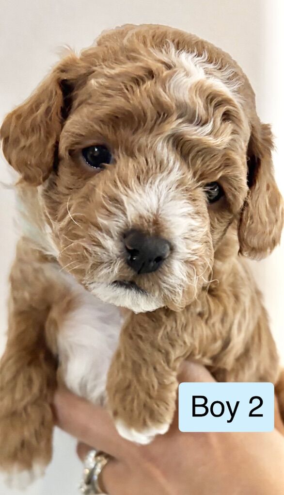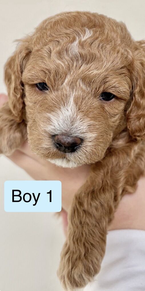 Boy 1 - $1200 This guy is our biggest puppy (which isn’t saying much). He’ll be around the 10 lb mark. He is so chill! He has the softest features and the sweetest face. He is being sold with breeding rights and will make a desirable stud for poodles and doodle dogs. He will make an excellent adventure buddy or service / companion dog.
