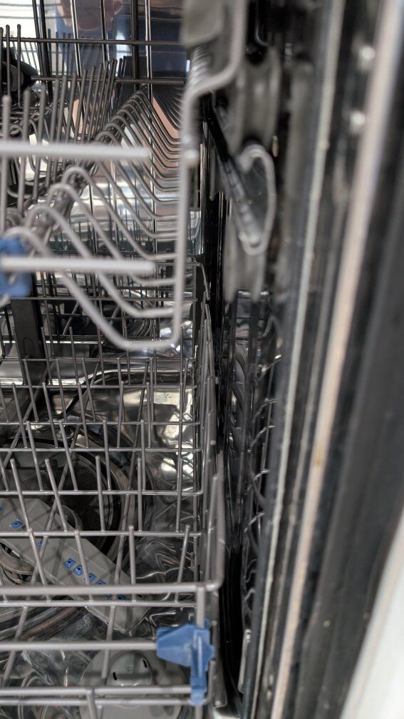 Top rack rail roller has been repaired but doesn't significantly effect performance.