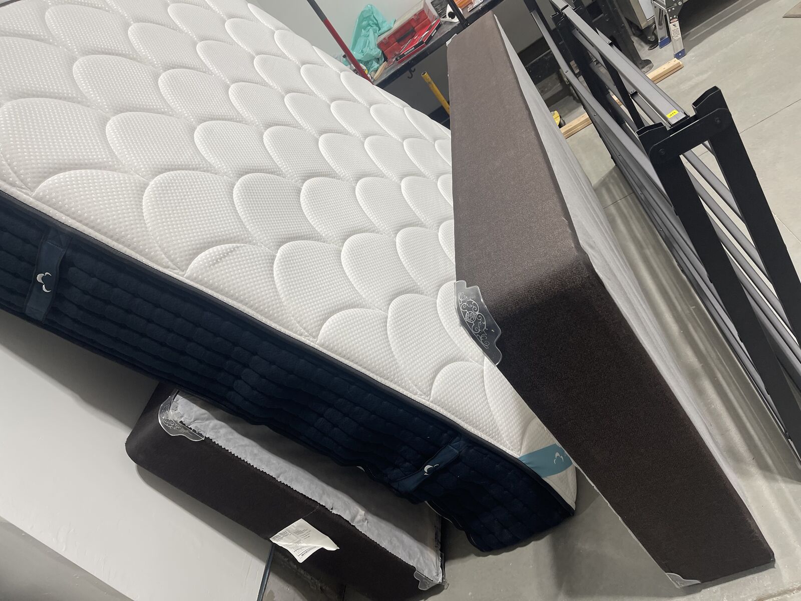 2 years old, 1 king size mattress and 2 twin XL box springs. Brand: Dream-cloud