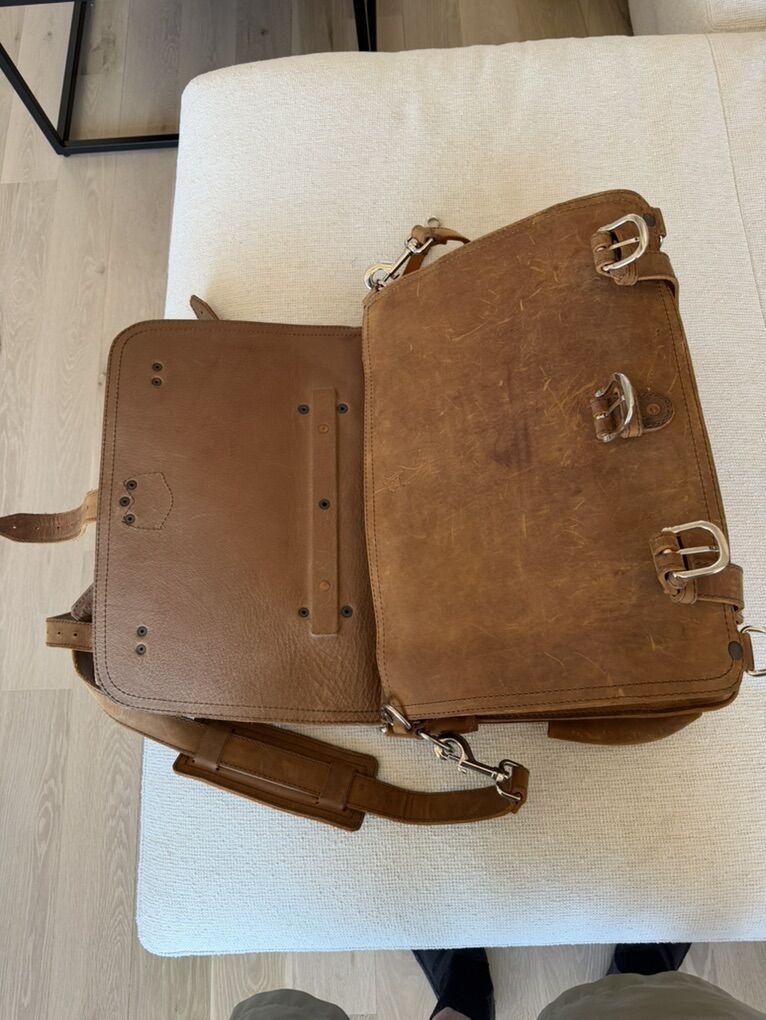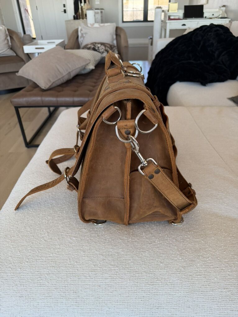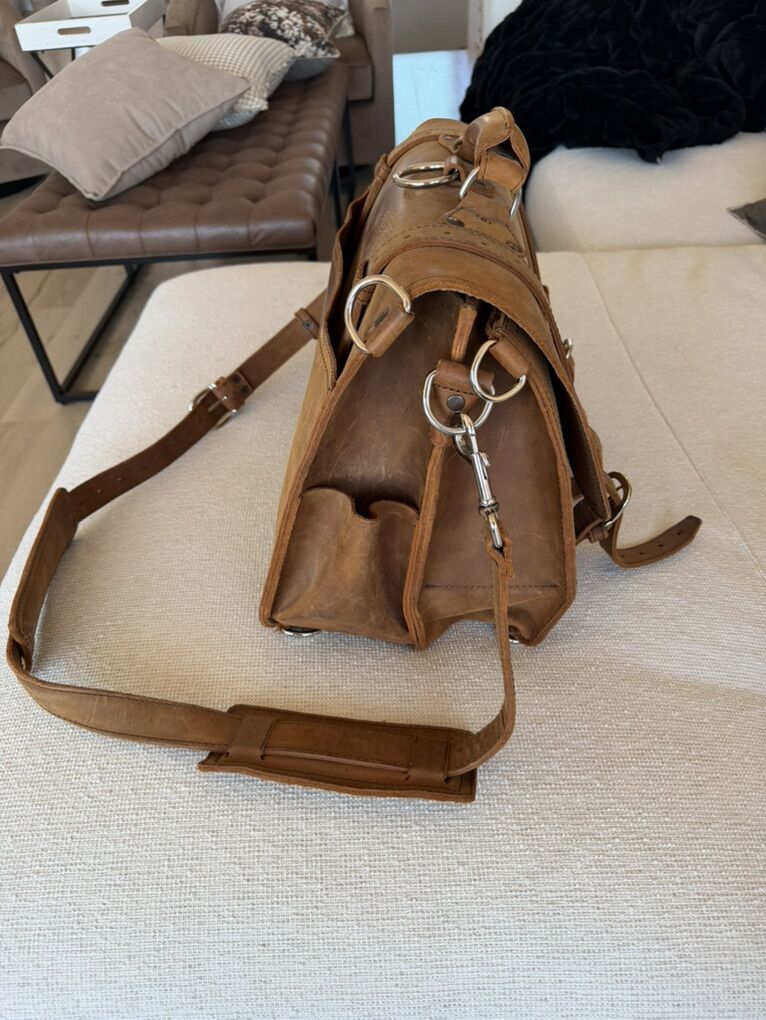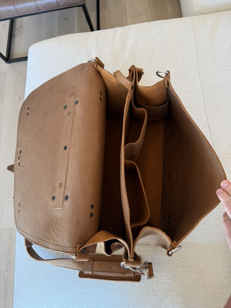 VenmoUp for sale is a preowned Saddleback Leather Classic Briefcase, size large, in tobacco brown. Has two interior compartments, several interior and exterior pockets, and detachable shoulder strap. It can be converted to be worn as a backpack. The briefcase has been gently used and shows some superficial scratches and overall patina: The briefcase was used only for carrying a laptop and books to and from work, so there is no damage or wear from outdoor work or weather. It has not been in use for the past three years as I purchased a different backpack for commuting. No rips, stains, or water damage. Smoke free home. The leather is a beautiful medium brown color which again takes on great patina with use. It could be conditioned to darken the leather but I didn’t want to alter the color. It is in great shape and has many decades of use still left! Saddleback Leather also has a 100 year warranty on their products.