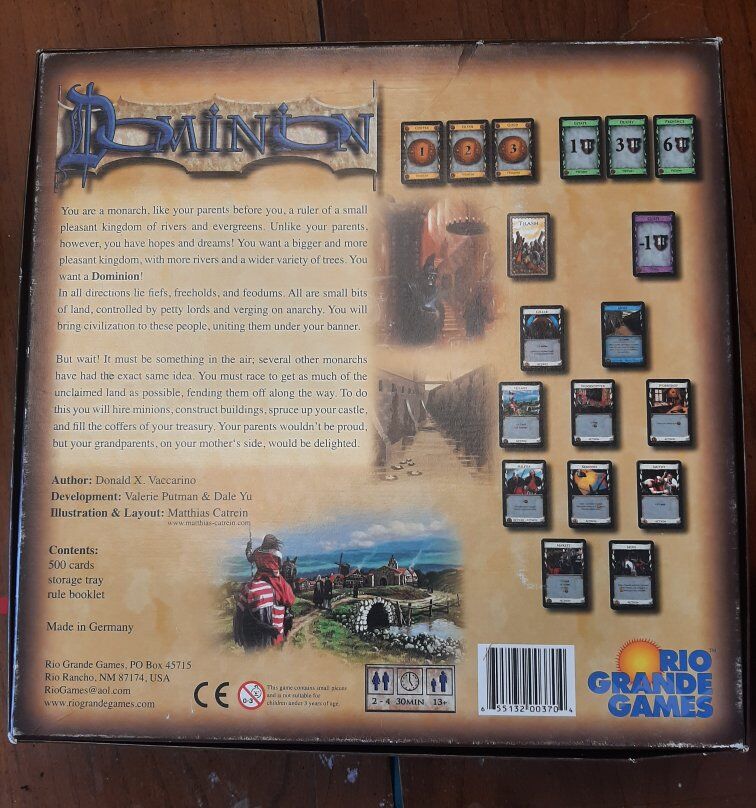 Dominion is a classic deck-building card game for 2-4 players. In the game, players start with a small deck of basic cards and must use these cards to acquire more powerful cards, which they can use to build their deck and gain victory points.