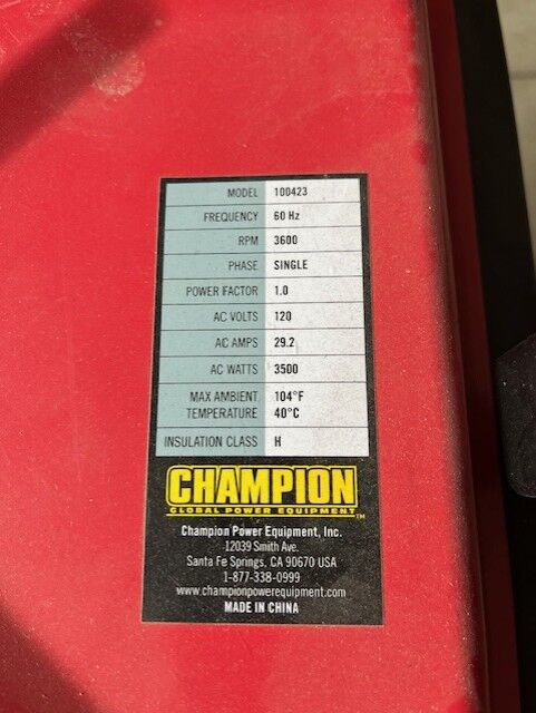 VenmoChampion Generator 4375 starting watt and 3500 running watt with remote. TT-30R, L5-30R, and two 5-20R.
