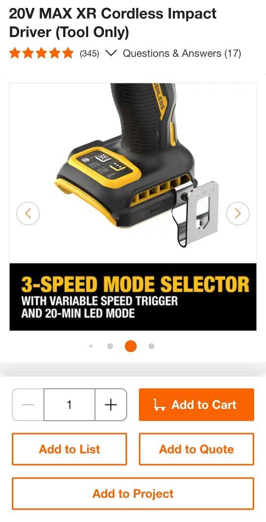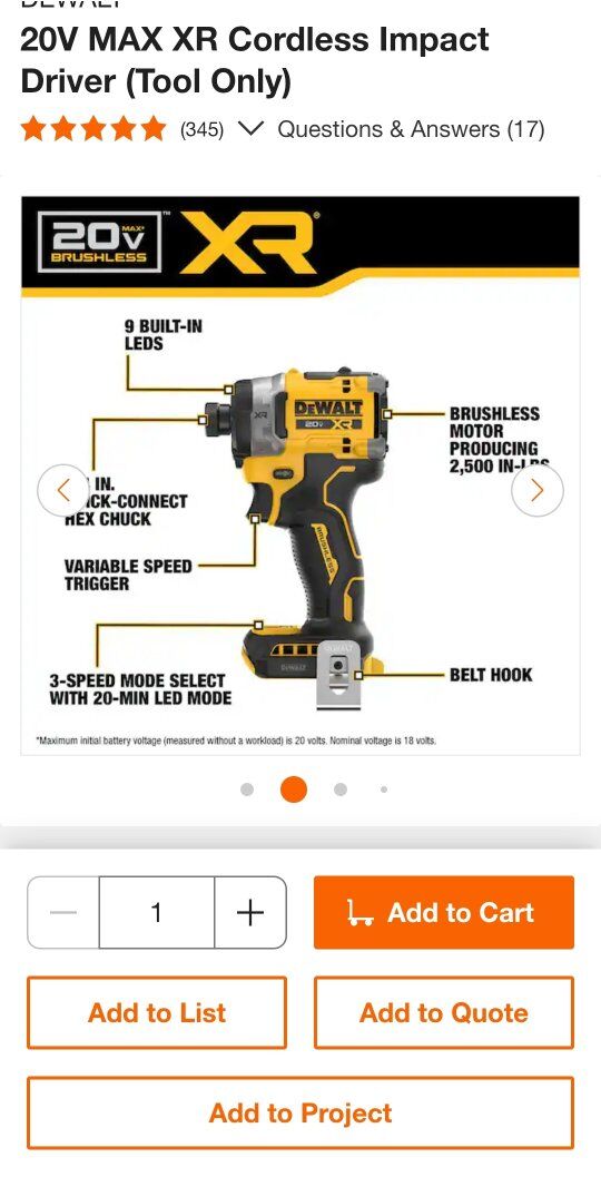 ZelleBrand New 20V MAX XR 3-Speed High Torque Impact Driver. This is Dewalts newest and most powerful 1/4 in. Impact Driver and is engineered for the demands of the pro with a max torque of 2,500 in./lbs., making it our highest torque impact driver. Maximize productivity with up to 63% faster driving, a no-load speed of 0-3,800 RPM, 9 built-in LEDs and 3-speed mode select to power through tough jobs. Tool only, Battery and charger sold separately. Model DCF860B Home Depot sells for $219, I am asking $130.