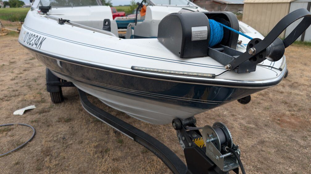 The Essentials: Motor: 90HP 2-Stroke. Runs strong. I have a brand-new impeller on hand for it that will be included with the sale. Trailer: Included. Recently refreshed with brand-new LED lights and a new 7-pin plug. Ready to tow. Price: $3,000 or Best Offer. Motivated to sell quickly due to a serious family medical situation. Key Features & Recent Upgrades: Electronics: New Garmin Fish Finder (installed). Comfort: New Bimini top with matching storage cover. Gear: New electric anchor for easy stays on the water. Access: New 3-step ladder for easy boarding/swimming. Storage: Plenty of onboard storage compartments for gear and life jackets. Condition: This is a "project boat" that is very close to being 100%. The motor runs well, and the major expensive upgrades (Garmin, Bimini, Trailer lights) are already done. It’s a solid platform for fishing or family days. Serious inquiries only, please. I am managing a family emergency and would appreciate straightforward buyers. Cash in hand preferred. Title in hand. Ready for a smooth transfer.