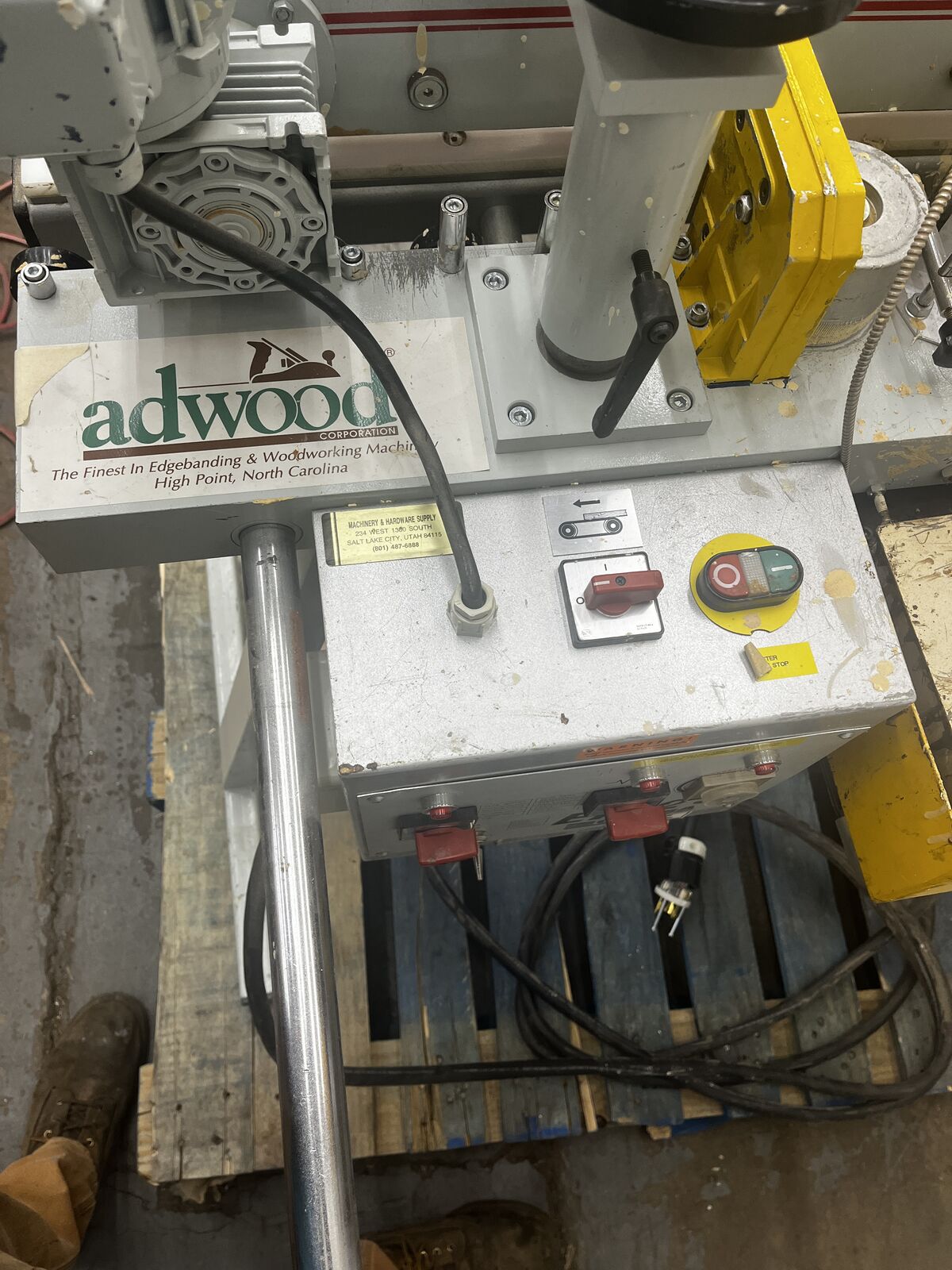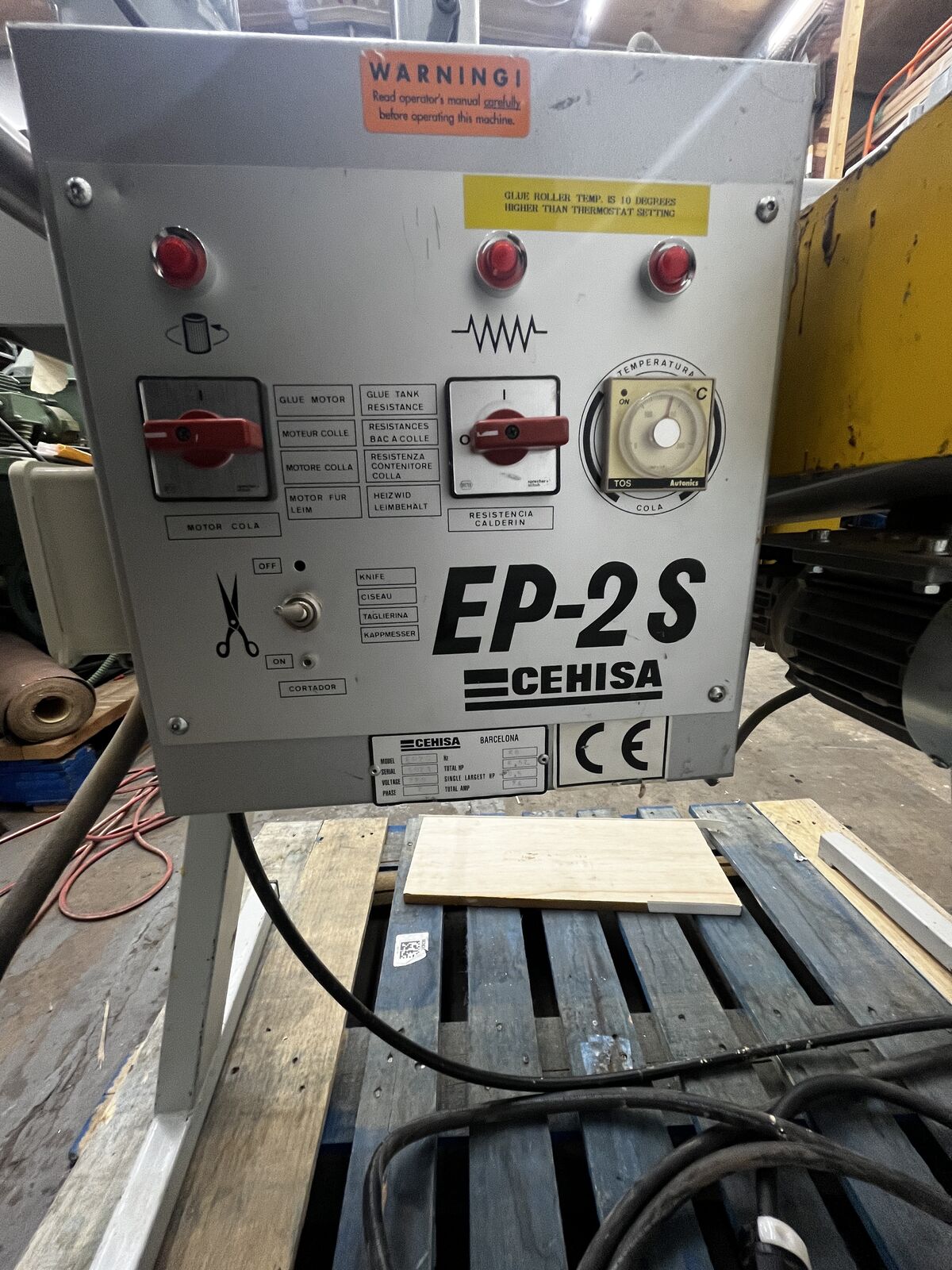 This is an Adwood Cehisa EP-2S hot melt edge bander with power feed and a pneumatic end chopping knife. it is a 220v single phase machine. comes with a new roll of white 3/4" banding. the machine is fully functional and in good condition.