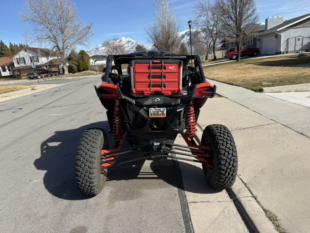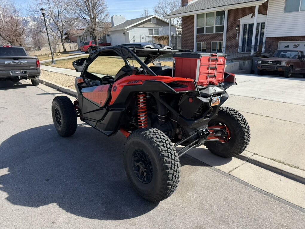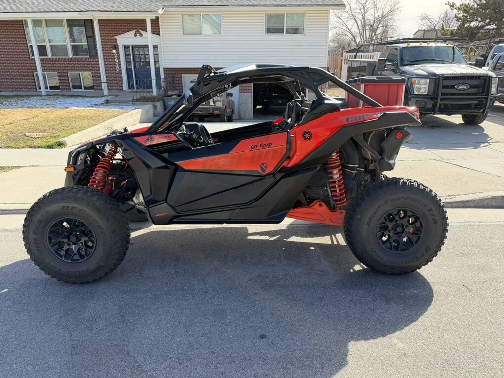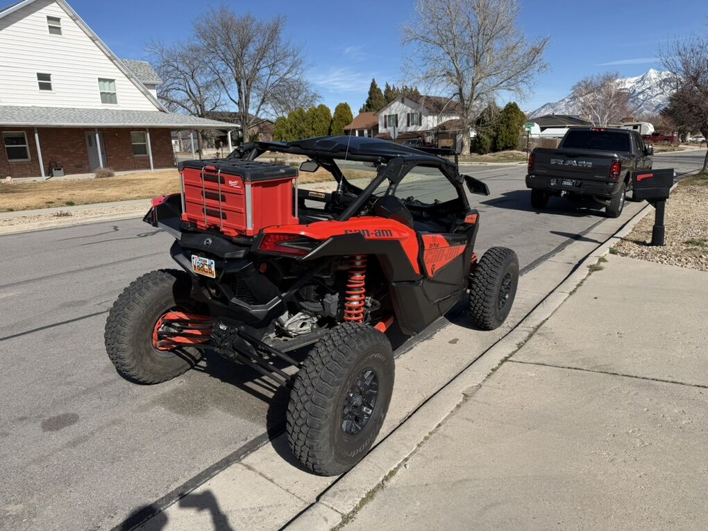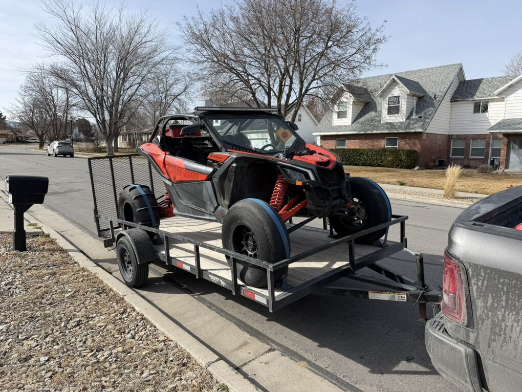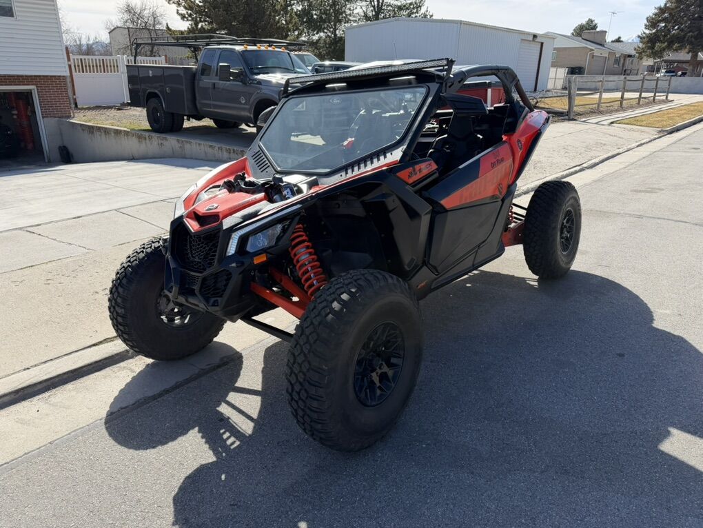 We bought it brand new from Tooele valley motor sports, we’ve since upgraded to the new model. This thing is turn key and ready to go on trail or sand. Comes with set of paddles on method wheels and the BFG km3’s on the stock wheels. Will also include the pictured trailer and out door cover. It rarely sits out side, most of its life has been in the garage when not riding. All maintenance as been done according to can am schedule, along with a new factory turbo. It has an Evo tune on it installed by TVM when we bought it. Has the “com” communication system with two head sets to communicate with passenger and also has a push to talk and radio to communicate with other rigs. You can also Bluetooth in and listen to music. 4 point harness also installed. I’ll include the packout drawer box as well, it has a little tool kit and extra belt with belt tool to do trail swap if needed. Orange led under glow and led light whips includes. Just rolled over 4,000 miles. Runs like the day we bought it. Last but not least, it has a street legal kit on it. Obviously the roof and windshield stay with it.