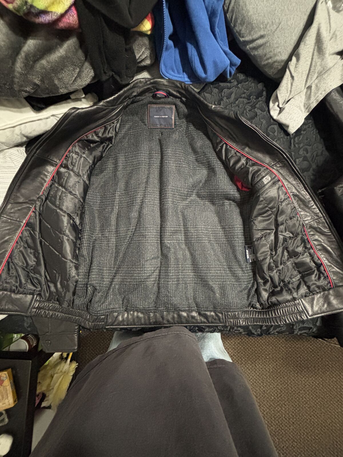 Brand new has tag sat in the closet Size is medium, color of it is black and has red inside sleeves