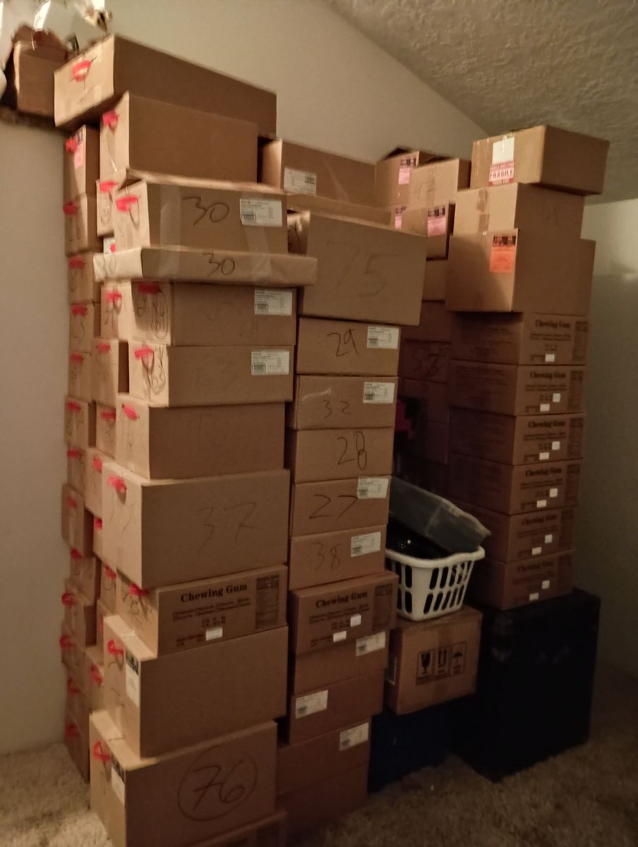 Each box contains one “special item, new Christmas lights, a Hot Wheel vehicle, a Ty Beanie baby animal or pop it figure(FUNKO) a souvenir pocket knife or Handyman tool or fidgit spinner and of course the box that is used to get your first round of items in the scavenger hunt.