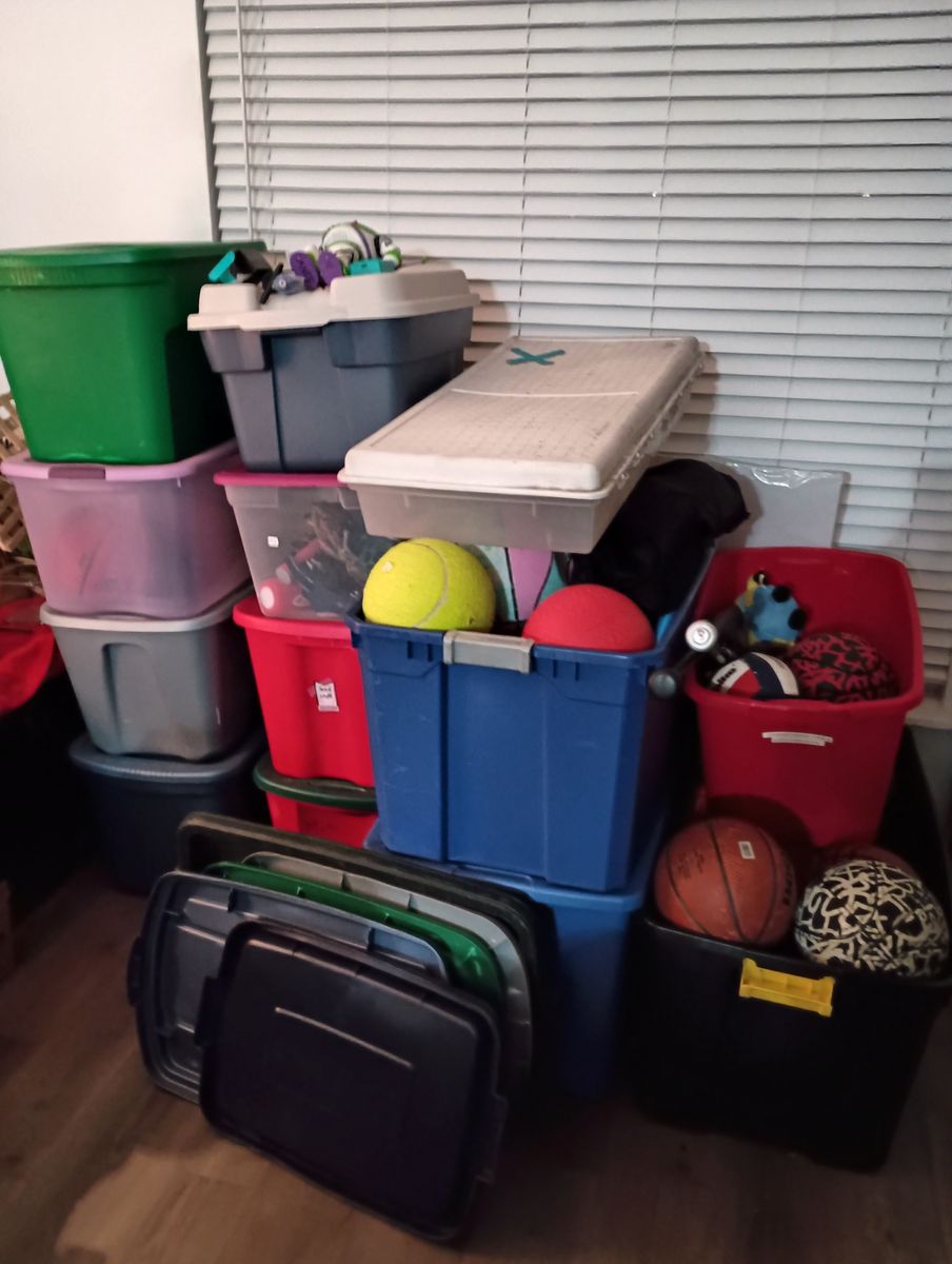100+ Sports Balls ( Soccer, Basketball, Volleyball, Football Baseball with two gloves and Large Exercise Balls.(all will be inflated properly).