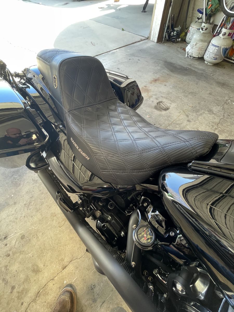 • 2 Saddlemen seats (Pro + Road Sofa) • 4-point docking hardware • Khrome Werks grips • Arlen Ness levers • Flo reusable oil filter • A1 oil pressure gauge