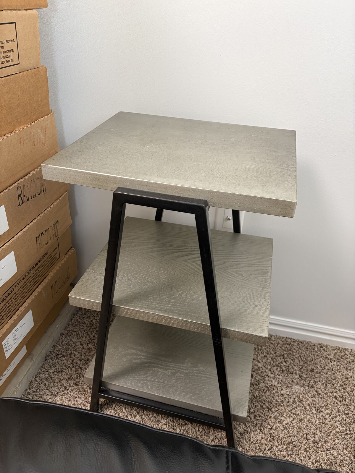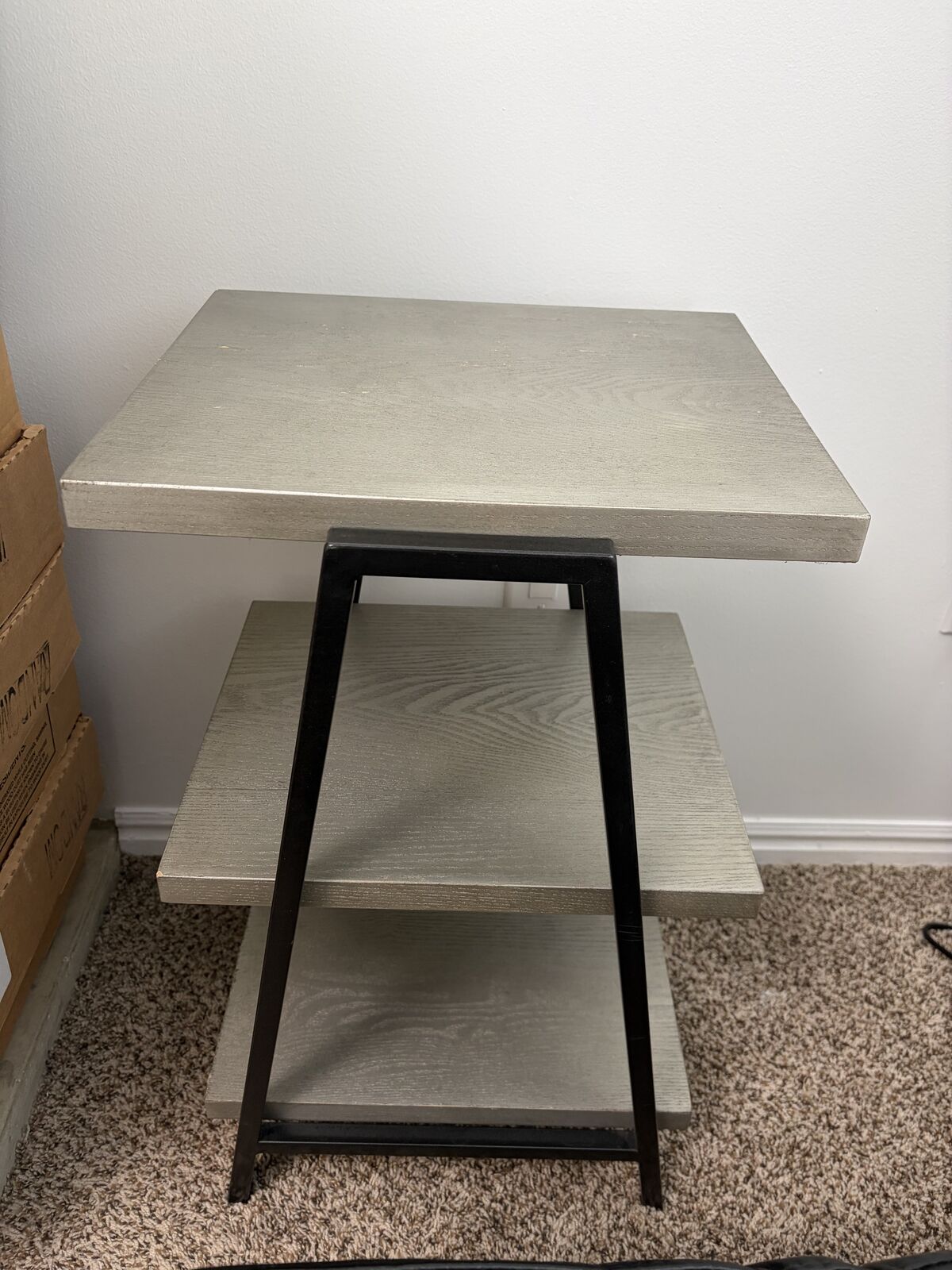 VenmoSmall Table or Shelving Stand, in good condition with some minimal wear and tear. Black and Silver. L 14 x W 12 x H 24 inches