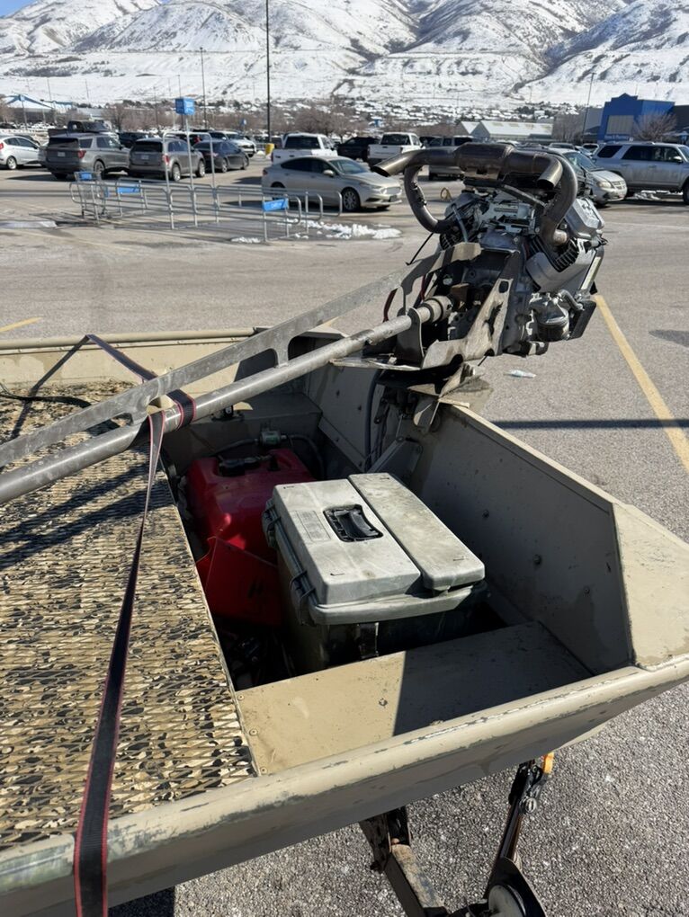 The time has come 1648 smoker craft with 23hp vanguard on a mudbuddy longtail kit paired with a bps exhaust. Motor only has 17 hours on it all maintenance and break in done according to the manual. All seals for the shaft as long as a new ujoint were installed when the motor went on. Has aluminum floors with foam flooring on top, a 42 inch light bar, new switch panel, interior lights and a bilge pump,comes with a blind that will need grass as well as a 5 gallon tank and full size battery under the middle seat! The tires are in good shape plus I have the stock exhaust and silencers for the one that is on it if you want to quiet it down. Slick bottom was done 1 season ago. Killed a lot of birds off of this boat but I’m ready for the next one asking $7800 get ahold of me if you have any more questions or want to shoot me an offer no trades.🤘