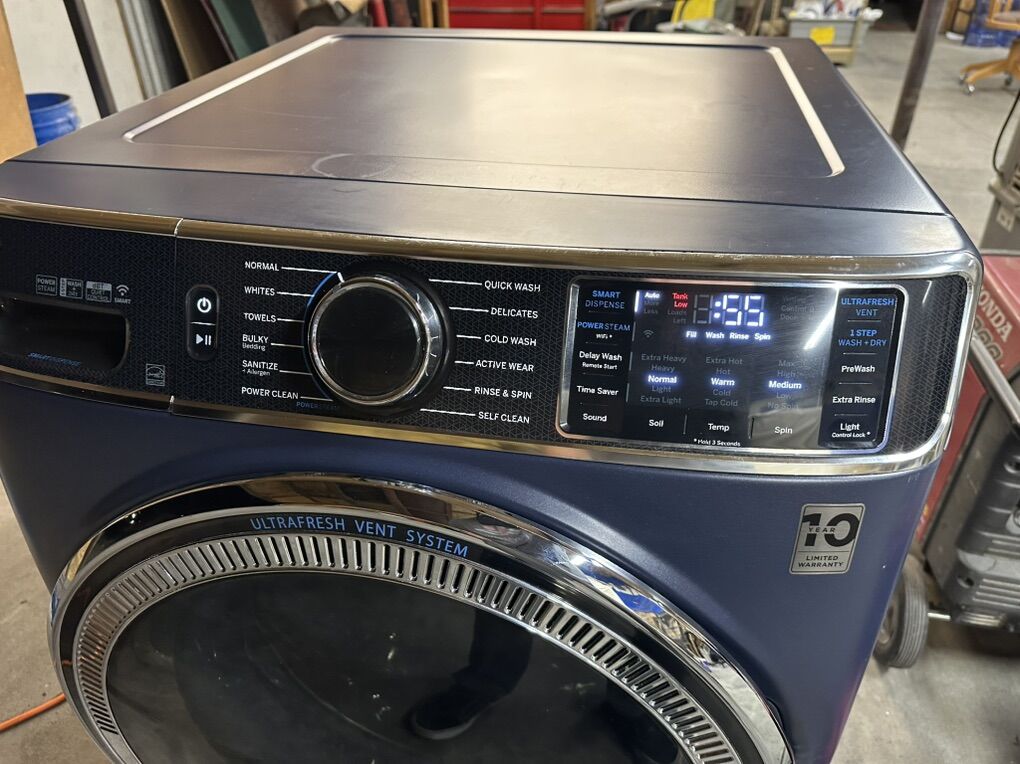 ZelleGE ultrafresh front load washer, 5 years old in great working condition, no leaks or issues. Brand new updated control board and door latch installed and fully tested and checked over. Has Wi-Fi and tons of options. Has a couple minor dings on the front but nothing major. Delivery available for an additional fee.