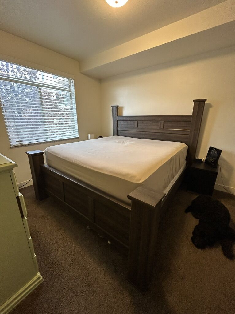 VenmoKing wood bed frame Bought from Ashley for $650 In good condition We are moving and don’t want to move with it
