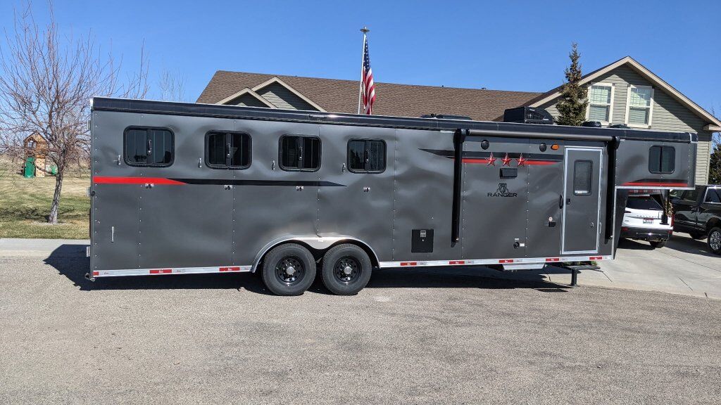 7× 36 4 slant horse trailer with living quarters. extremely nice for both horses and owners. queen bed, pullout couch. lots of kitchen storage. fridge, stove, microwave. full shower. pass through to horse area. AC . full roll out sun shade. TV mount outside. all the bells and whistles! open to lease with option to buy. 5,000 down 600.00 a month See Less