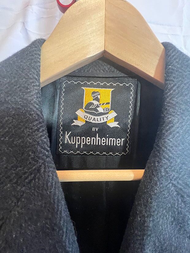 Well-tailored wool overcoat by Kuppenheimer. Clean, classic look suitable for business or formal wear. Quality construction and timeless design.
