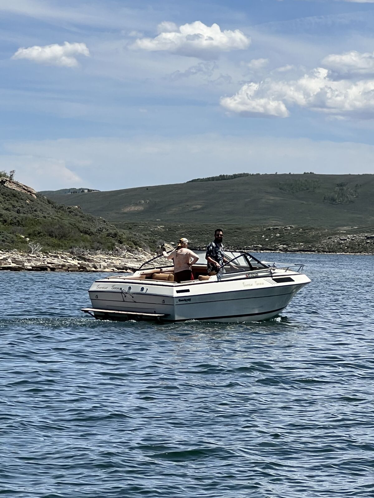 Engine is in fantastic shape for the year with LOW engine hours. I’ve replace a few coolant hoses and have a new water lift pump prop if it’s needed. Runs amazing I have gotten it up to 40ish mph and is smooth with the added trim tabs. It’s a deep haul and tall so it takes the waves well. All gauges work even the mph gauge.