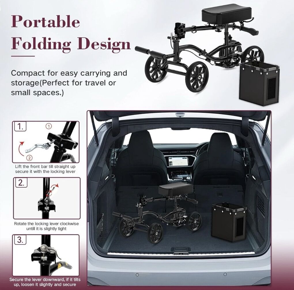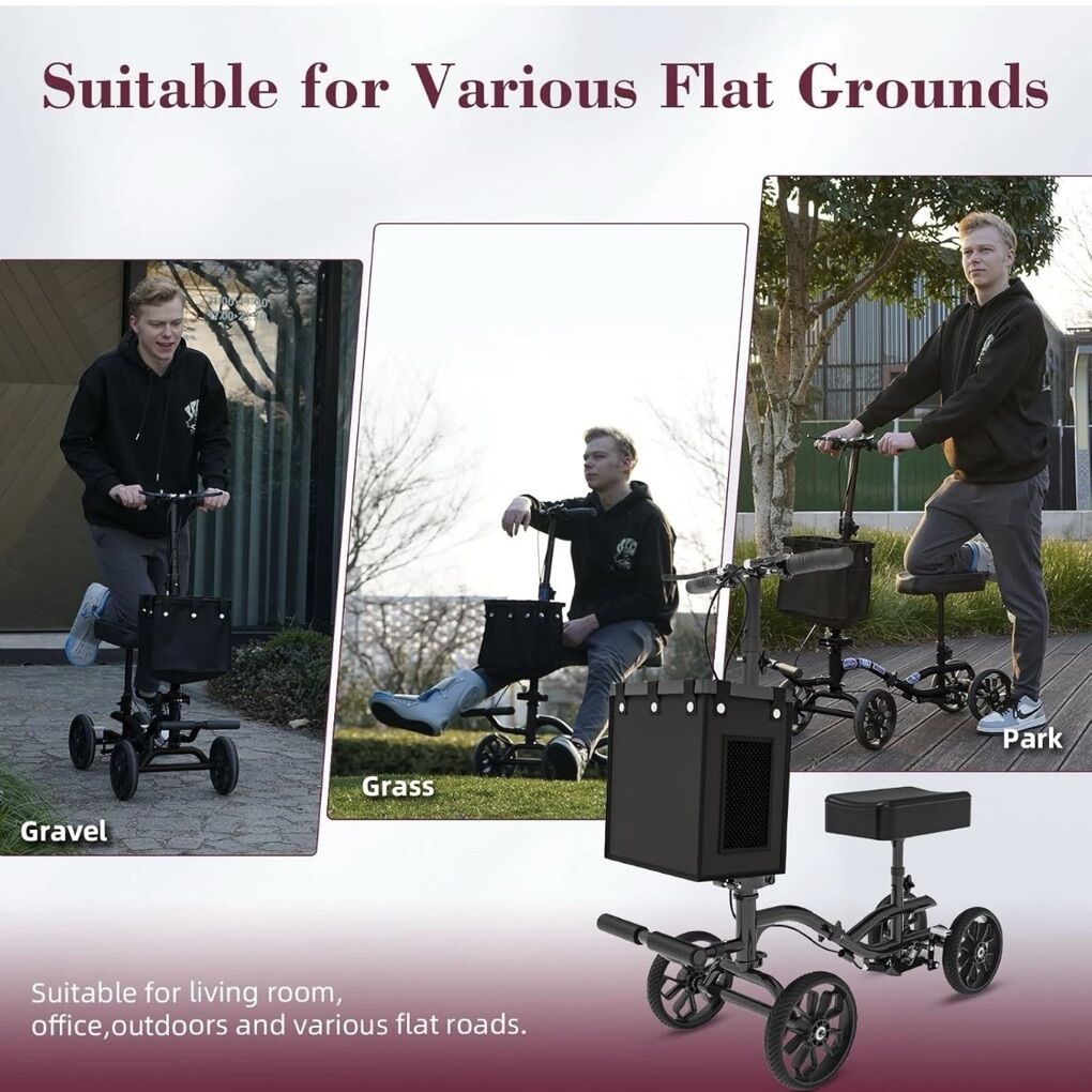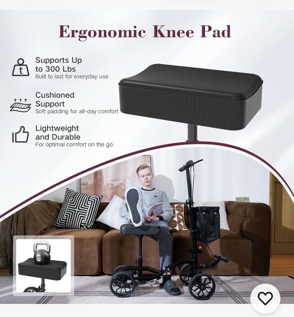 VenmoBrand FVZZIN Color Metallic Black Material Iron Item Weight 20.9 Pounds Style Modern About this item High Quality Knee Scooter: The Fvzzin Knee Walker is the perfect alternative to crutches, designed specifically for patients recovering from foot, ankle, or leg injuries. The Fvzzin has always been dedicated to producing high-quality products that prioritize patient mobility and speedy recovery.So that patients can get appropriate exercise during use, and help each patient to recover as soon as possible. Upgraded Iron Frame: The frame of our knee scooter is constructed using premium-quality iron, featuring a vibrant and energetic design, the color of the novel, full of vitality. While reducing the overall weight of the scooter, we have also enhanced its stability, Brand New in Original Packaging Assembles in Minutes
