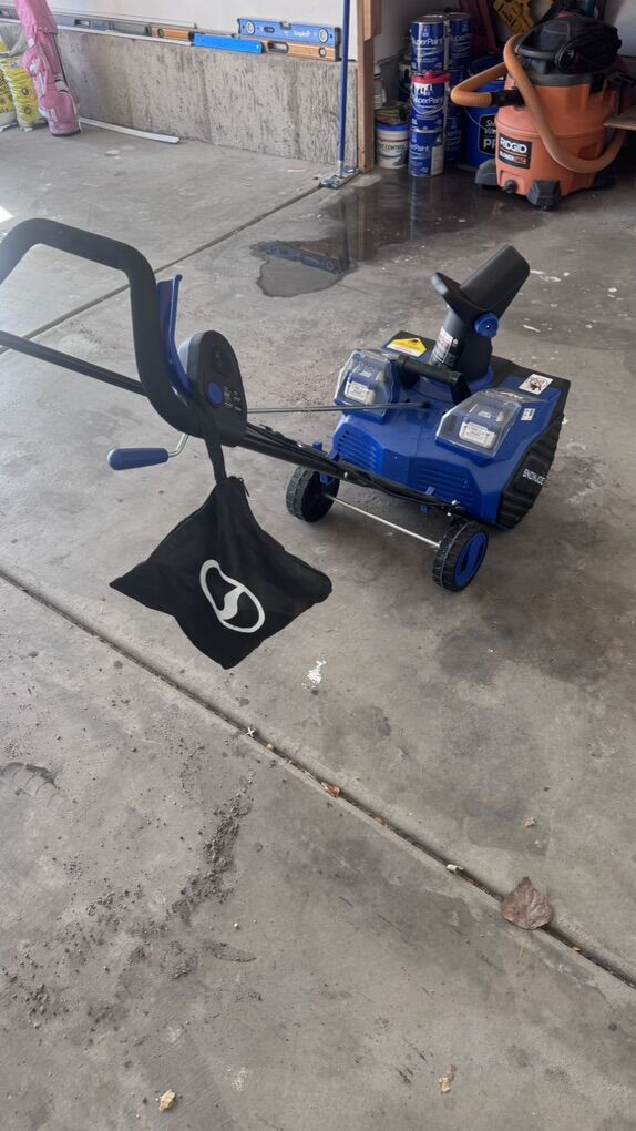 ApplePaySNOW JOE DUAL BATTERY SNOW BLOWER. COMES WITH 2 4Ah Batteries and a charging cord. Received as gift and do not need.