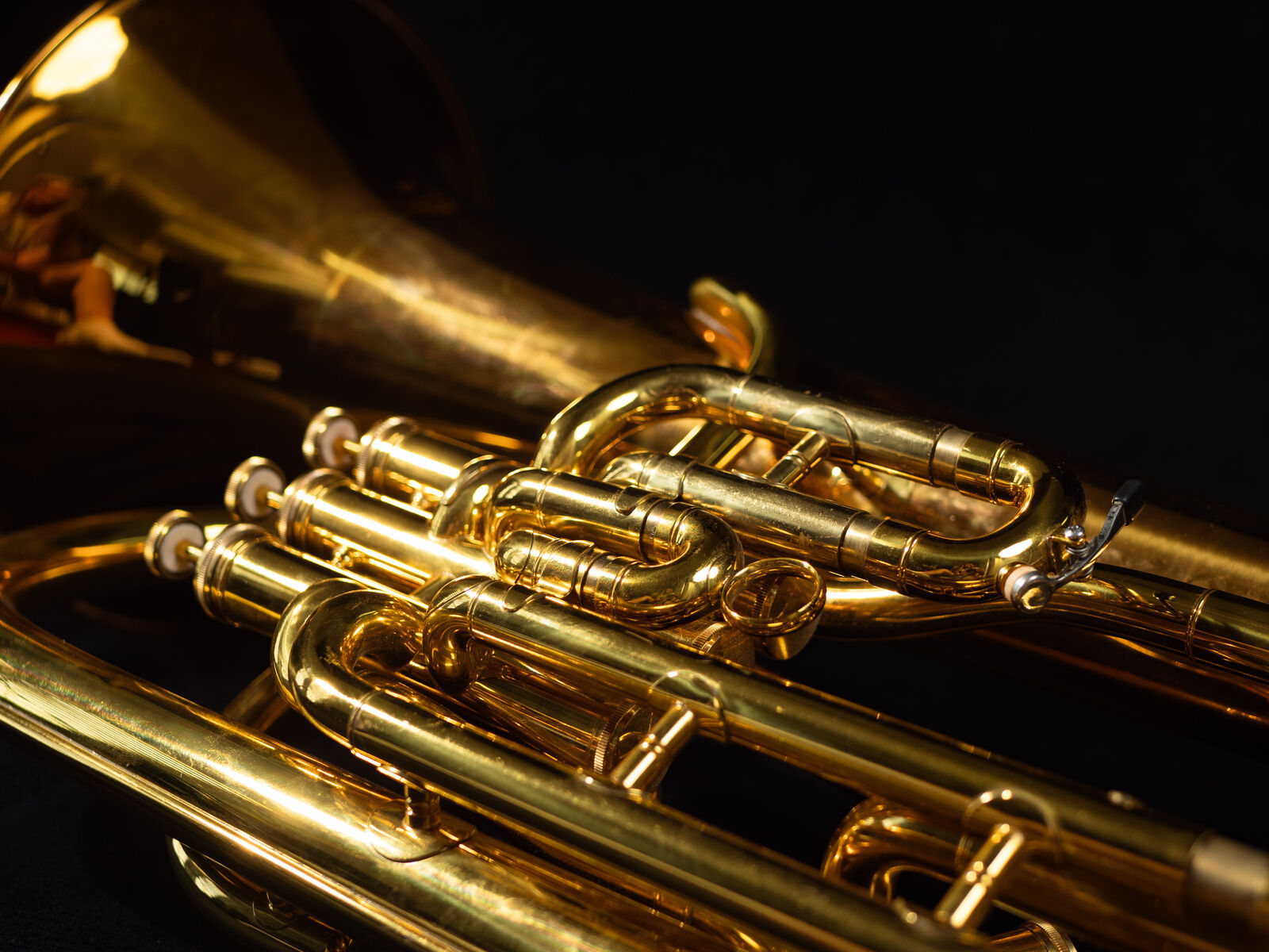 Up for sale is an excellent condition Kanstul 975 compensating euphonium. Great player, dark sound, and very nimble, and a little sharp on the F partial (like many euphs, to be fair). Look closely to see a bit of lacquer blemishing around the bell edge, which is the result of a chem-clean gone evil.