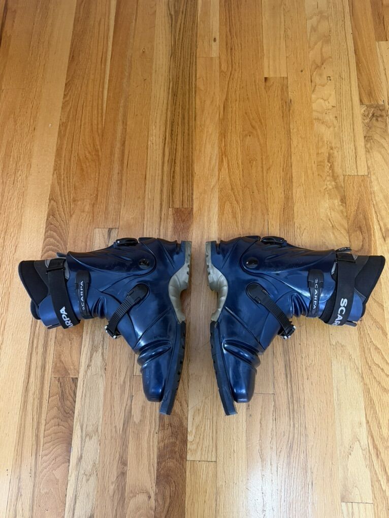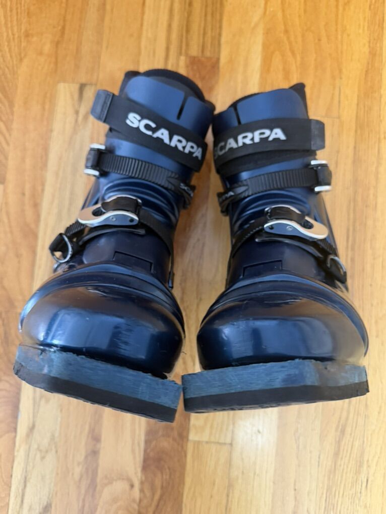 Hard to find Scarpa T2 TERMiNATOR, 75mm Nordic Norm telemark ski boots UK shells marked 10/11 which is USA men’s 11/12 Scarpa liners in very good shape, can’t find any real wear marks to the liners!
