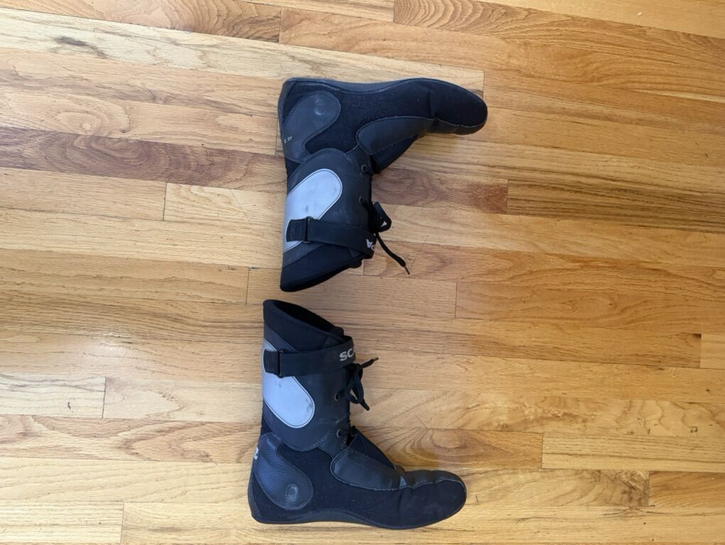 These boots are in very good condition, no broken or missing pieces. The soles show minimum wear, all buckles and bales in good shape, some minor scratches, chip and scraps to boots inside portions of the exterior of the boots and soles. Shells are marked UK sizing 10/11 being euro volume 44.5 through 45.5 Mondo fit 29 through 30 USA fit 11 through 12. Pictures are of the actual item for sale and part of the description