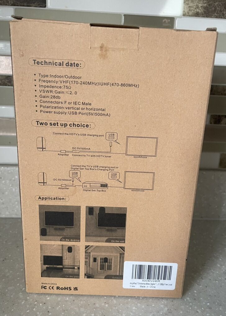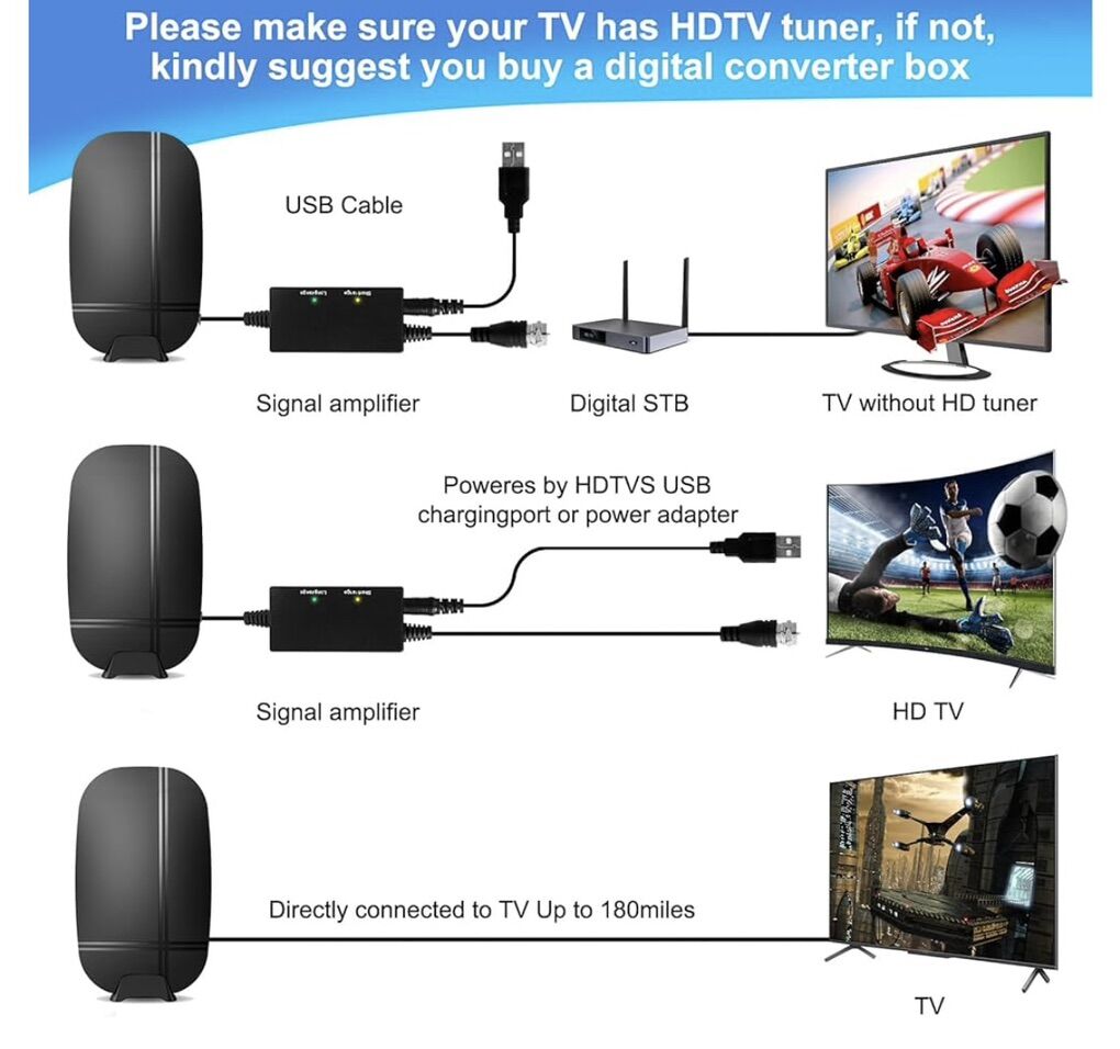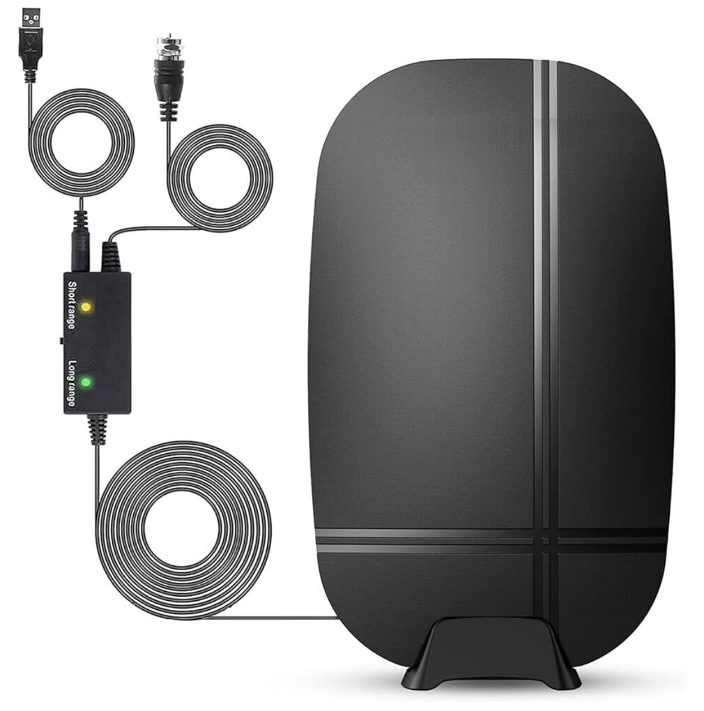 VenmoIndoor/Outdoor HDTV Antenna designed to receive free television channels. Key specifications and features include: • Resolution Support: Capable of receiving 4K Ultra HD and 1080P HDTV signals. • Reception: Features 360-degree reception signal quality. • Cost: Provides free channels with no monthly fees or contracts required. • Design: Features a sleek and modern design suitable for indoor or outdoor use.