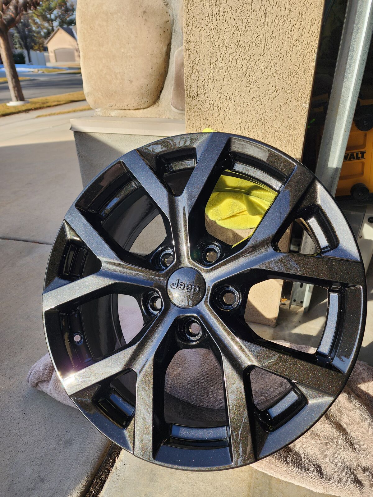 VenmoSet of 4 18in jeep grand cherokee rims newly painted for sale with matching center caps. Rims are painted a black effect (dark brown with metallic flake) color and multiple coats of clear coat. The side of the rim that the tire covers is a differnt color then the rest of the rim but the tire will cover that. Originally bought these rims to put on my jeep but didnt like the size and look. Looking to get rid of them so shoot me a reasonable offer