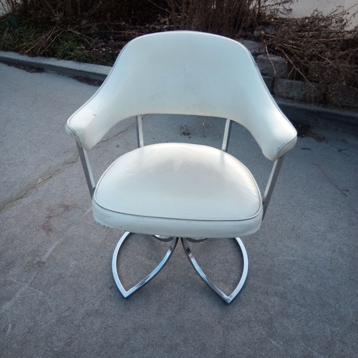 Vintage, mid century, chrome and vinyl tulip chair made by Cal-Style